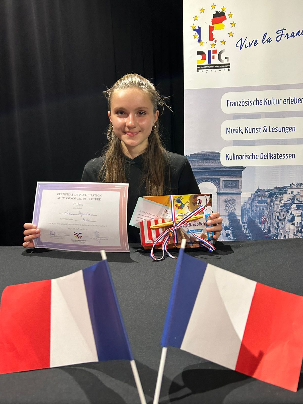 2. Platz beim Vorlesewettbewerb der DFG Bayreuth: Félicitations, Anna!