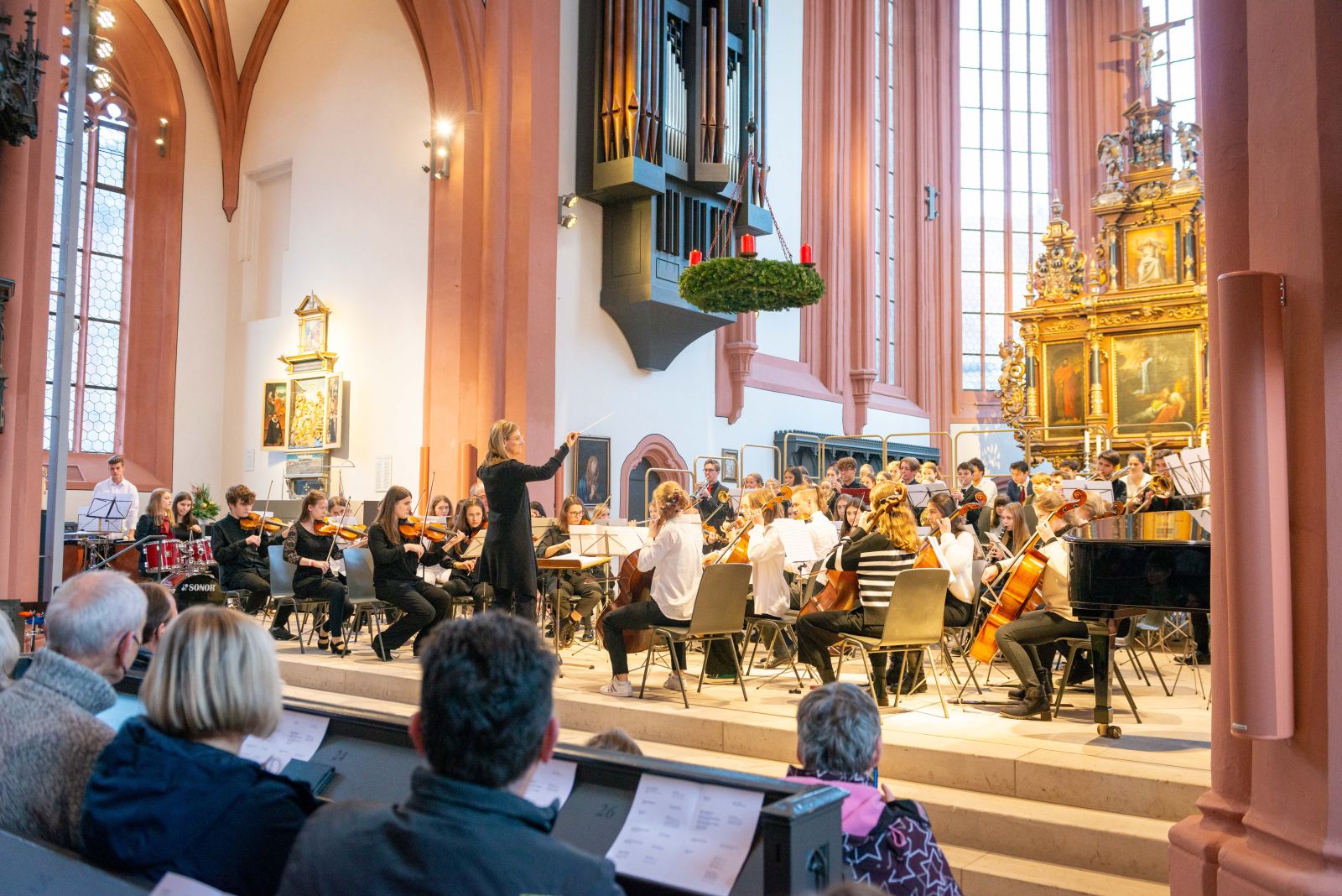 Am zweiten Advent 2022 konnte nach der pandemiebedingten Pause wieder ein Adventssingen als Weihnachtskonzert des MWG stattfinden. Chöre, Orchester und Ensembles unter der Leitung von Kirsten Bosch, Elisabeth Götz, Klaus Hammer und Günter Leykam rührten die Zuhörerschaft in der vollbesetzten Bayreuther Stadtkirche an und versetzten sie in eine zauberhafte vorweihnachtliche Stimmung. Es erklangen unter anderem Werke von Iljitsch Tschaikowsky, Donald Moore und Dan Forrest. Ein besonderes Highlight war unsere Schulleiterin Elisabeth Götz als Solistin an der Querflöte.