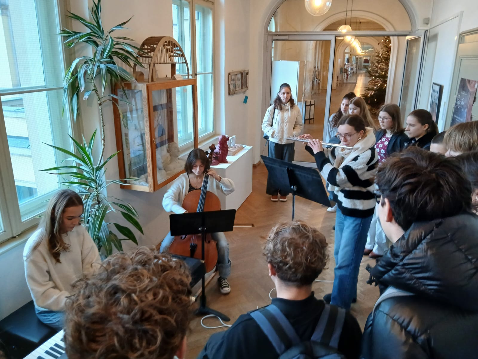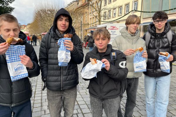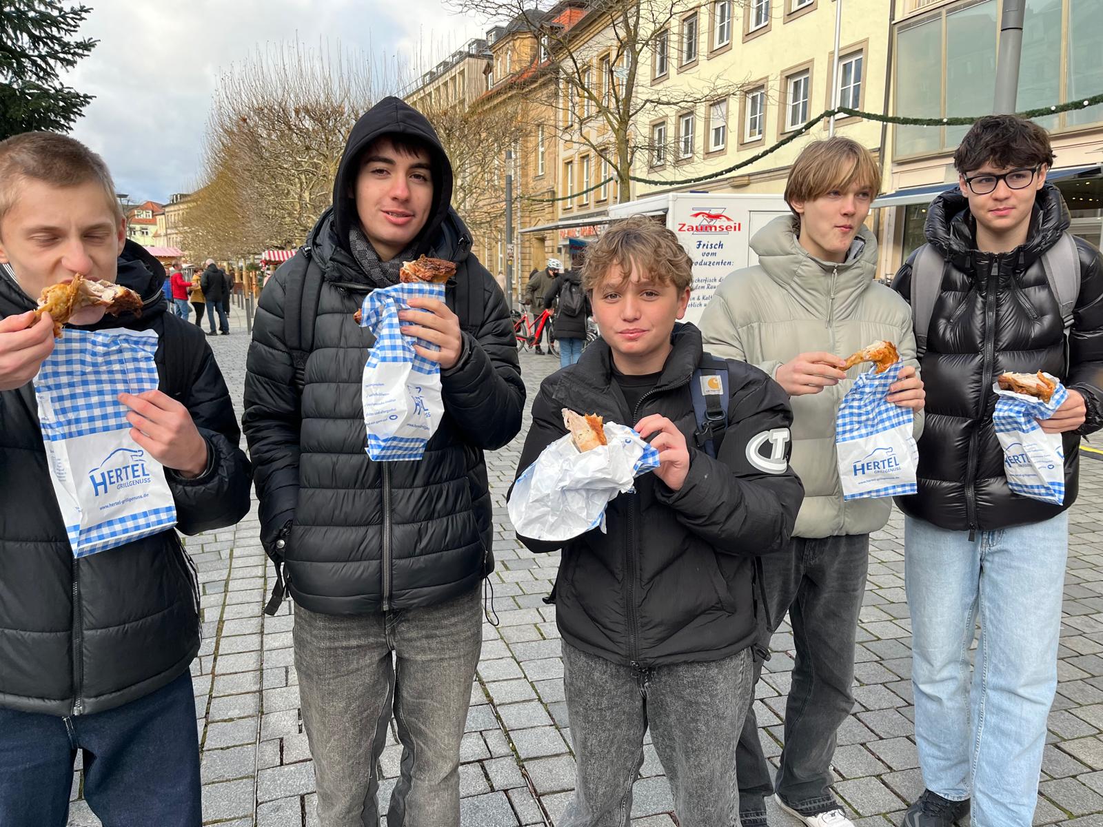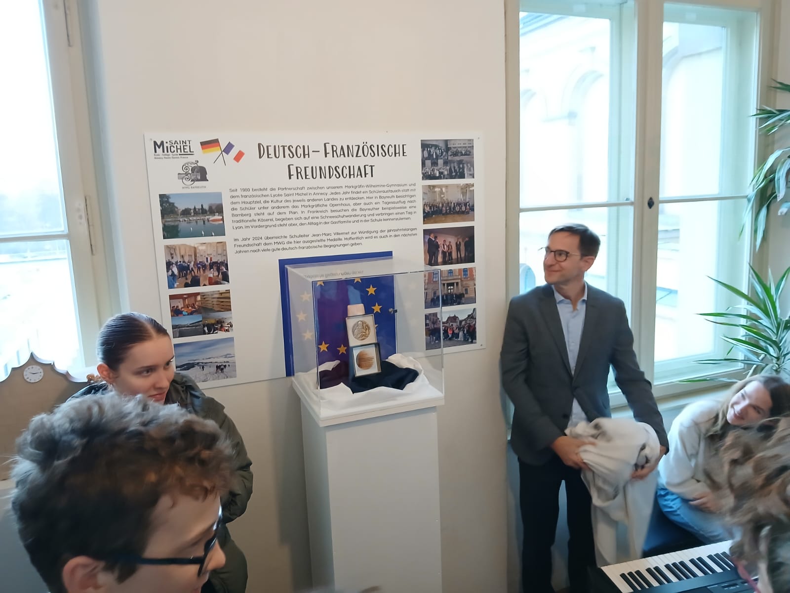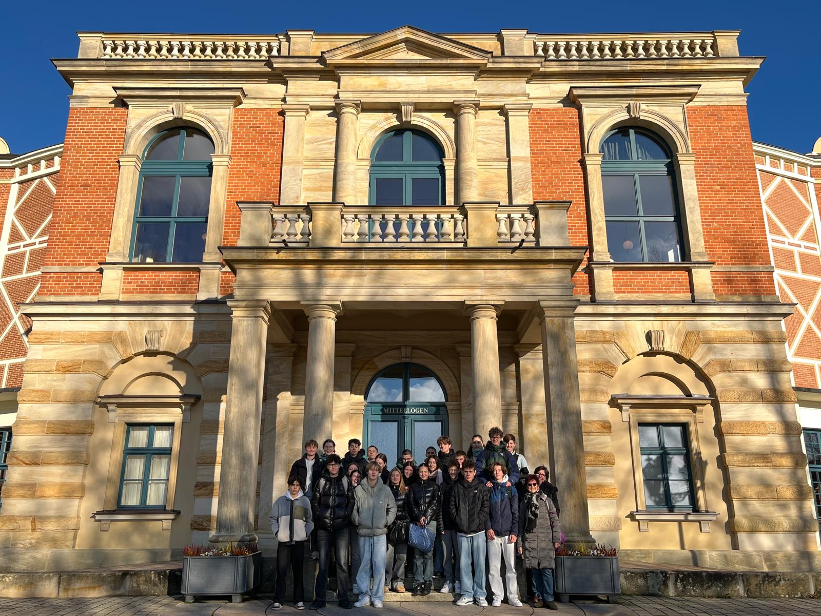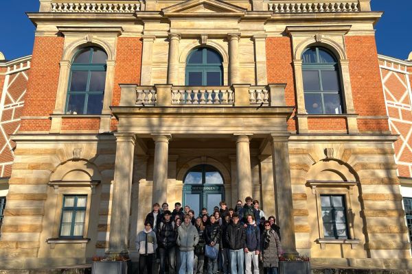 Der Heilige Nikolaus selbst ließ es sich nicht nehmen, die Gruppe von 24 Austauschschülern aus Annecy am Morgen des 6. Dezember zu verabschieden und ihnen eine gute Heimfahrt zu wünschen. Herr Langmeier scheint gute Kontakte zu ihm zu haben; wir bitten ihn, dem Nikolaus herzlichen Dank für sein Kommen zu sagen. Dank gilt auch allen, die sich aktiv für den Austausch engagiert haben, und insbesondere den Gastfamilien, die seit dem 27. November einen französischen Zehntklässler von unserer Partnerschule, dem Lycée Saint-Michel, bei sich hatten. Die Schülergruppe, die wieder von Vanessa Brun und Marie-Claude Foulex begleitet wurde, verbrachte eine intensive Zeit in Bayreuth. Gleich am ersten Morgen wurde mit einer kleinen Feier gegenüber dem Direktorat die Vitrine mit der Medaille enthüllt, die Saint-Michel im Frühjahr 2024 dem MWG für die jahrzehntelange Treue verliehen hatte. Neben dem Besuch des Unterrichts standen dann einige Besichtigungen (u.a. das Markgräfliche Opernhaus) sowie gemeinsame Aktivitäten (z.B. Bowling) mit den deutschen Partnern an. Diese freuen sich nun auf den Gegenbesuch im April 2025.