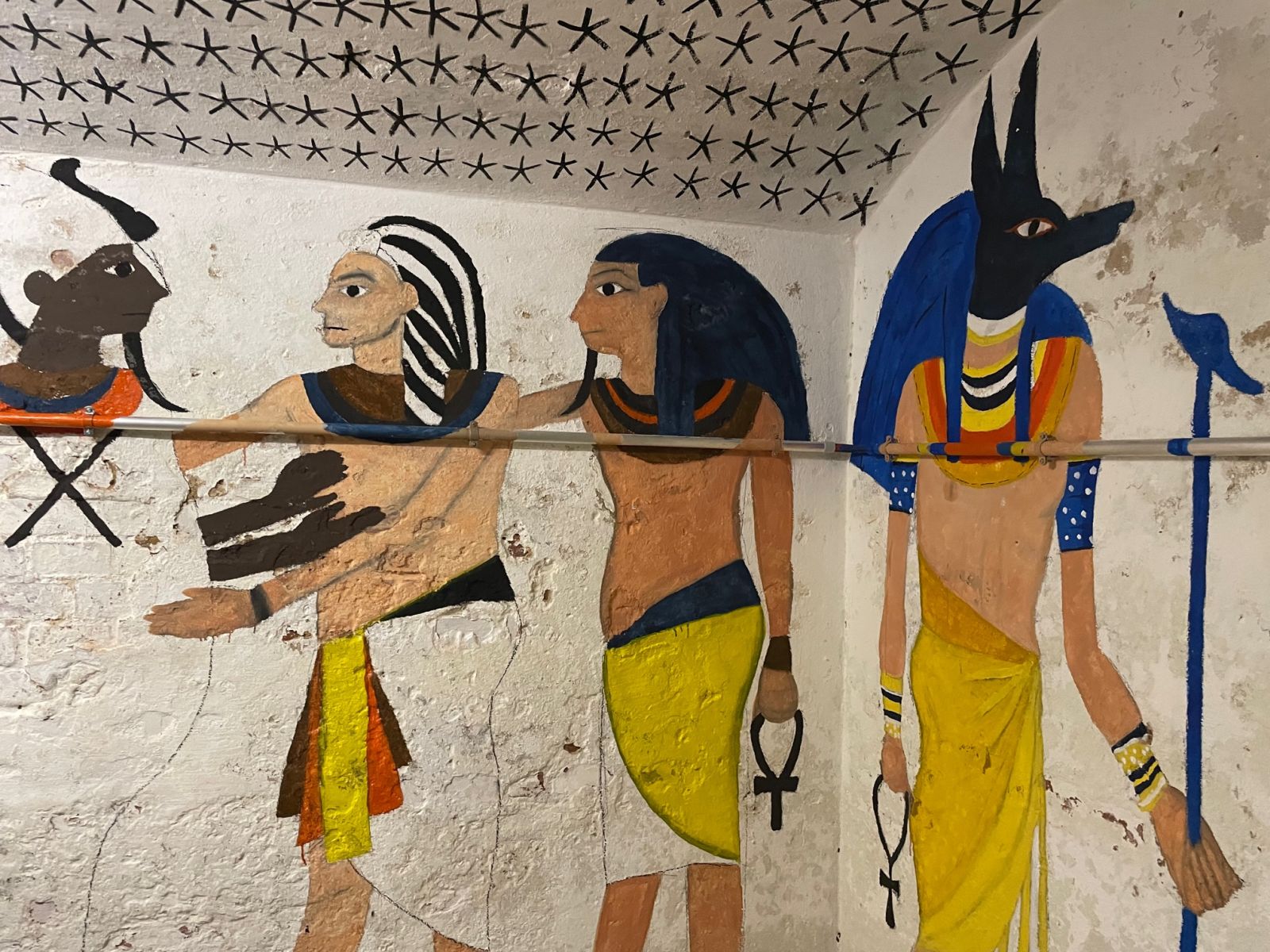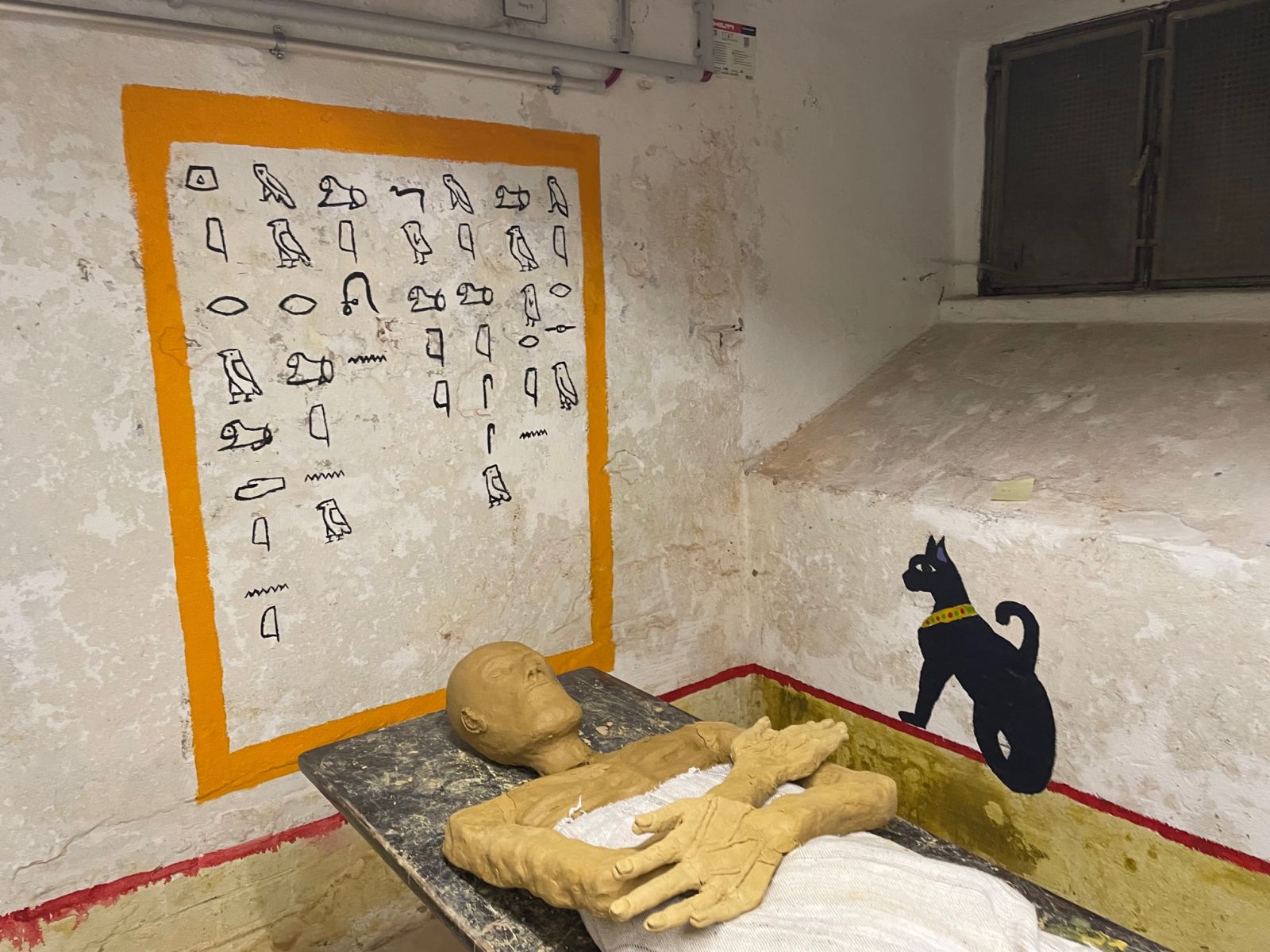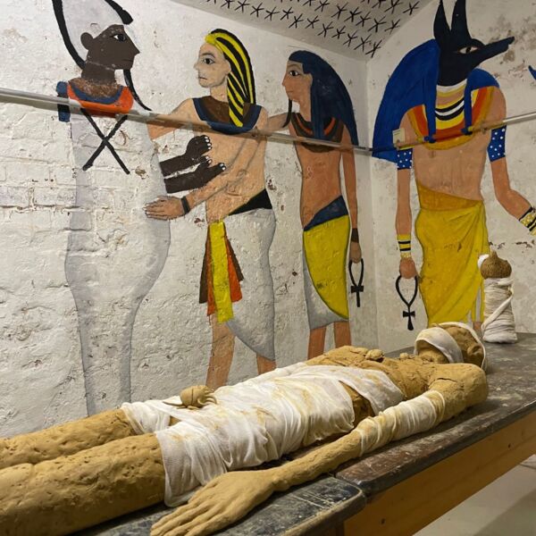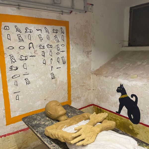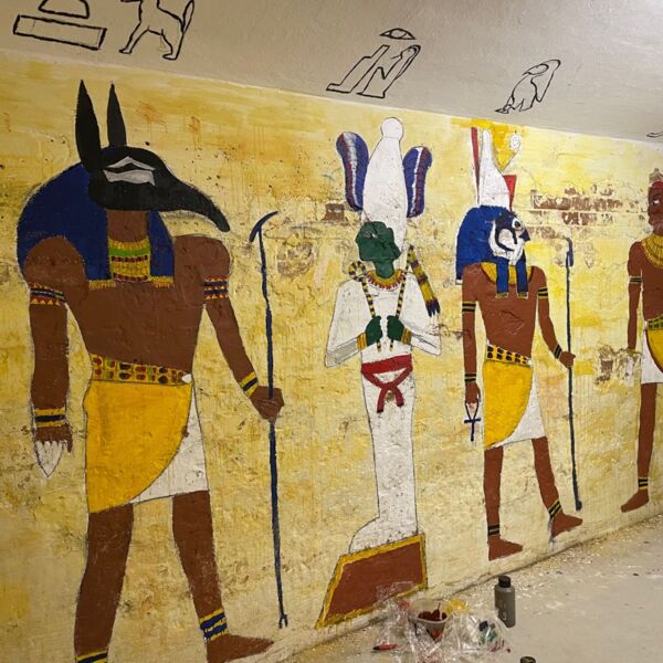 In den Kellerräumen des Westflügels hat der Kunstkurs der Q11 ägyptische Grabkammern nachempfunden. In den kleinen Kammern befinden sich Malereien mit Motiven aus dem neuen Reich, Hieroglyphen und modellierte Mumien. Besichtigung auf Anfrage.