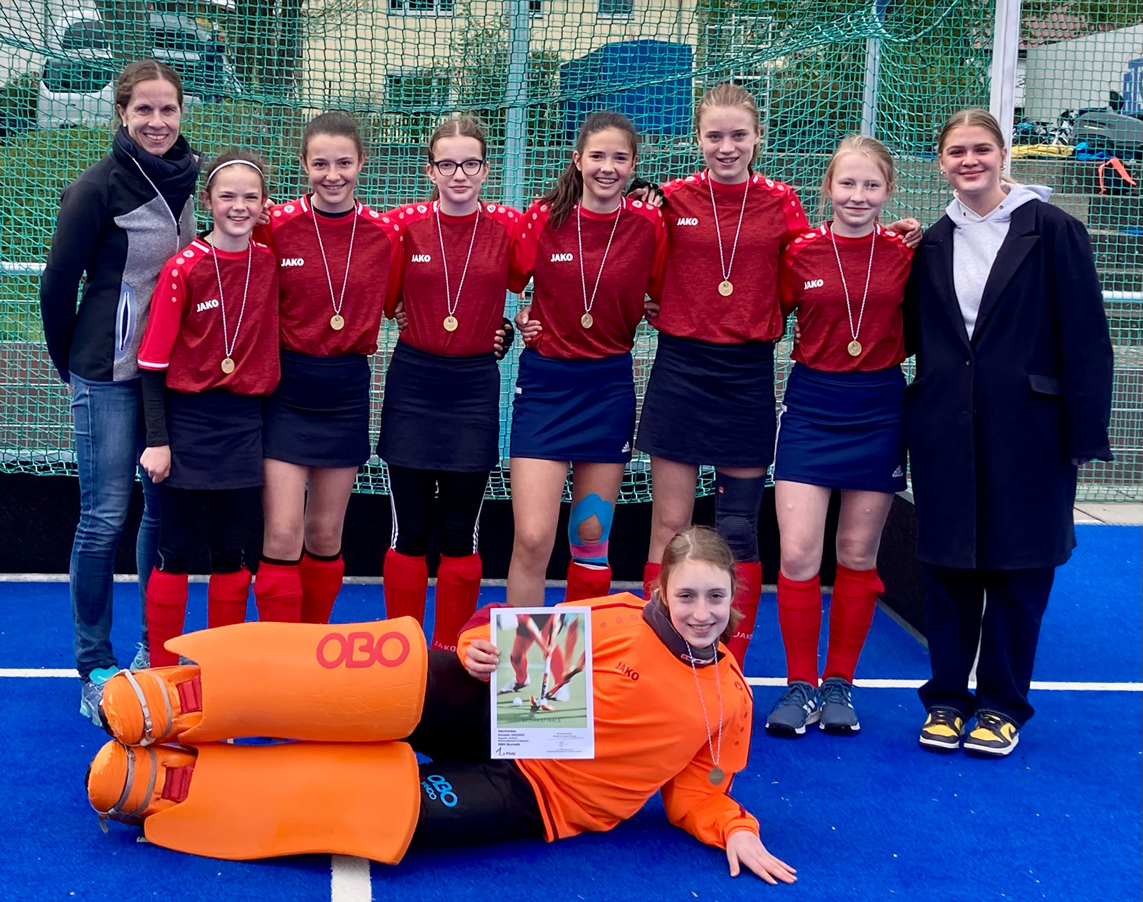 Es spielten: Jule Allwicher, Laura Huth, Johanna Hacker, Malin Allwicher, Laura Pusch, Jette Wittig, Hedi Allwicher; Coach Jule Meierott, Kerstin Zimmermann