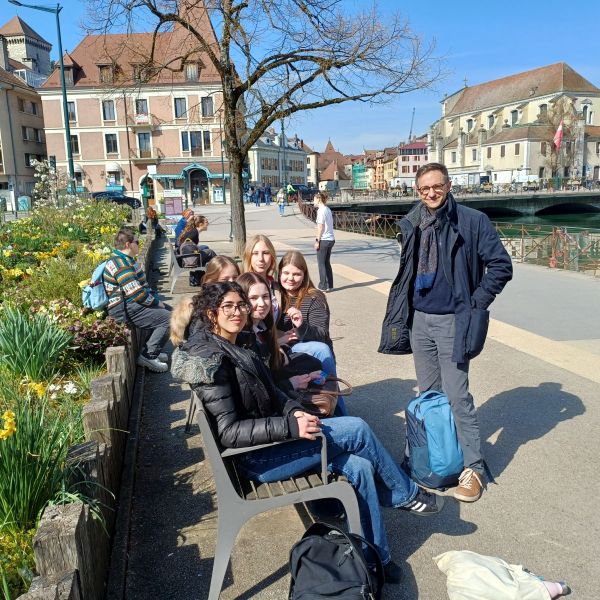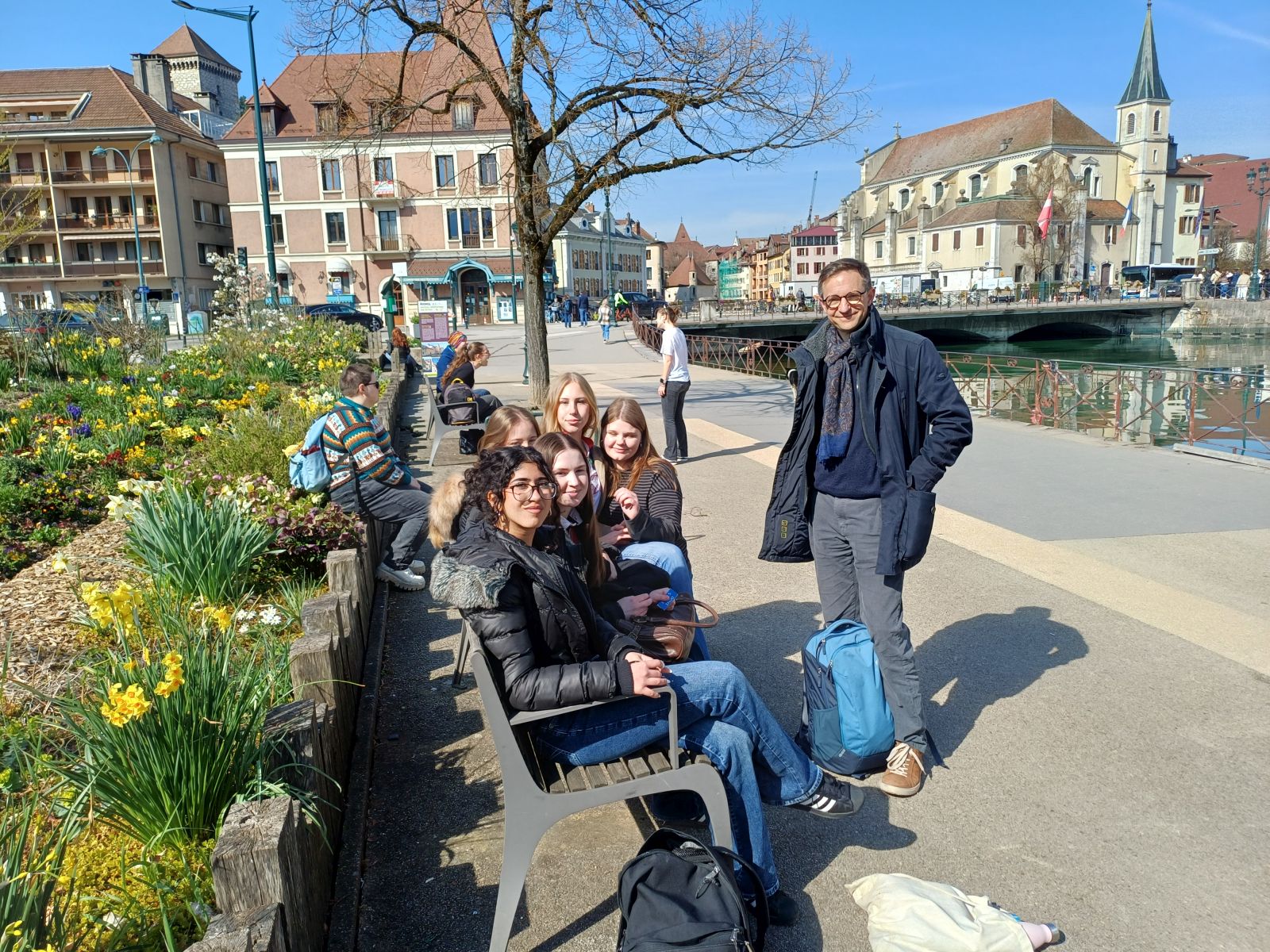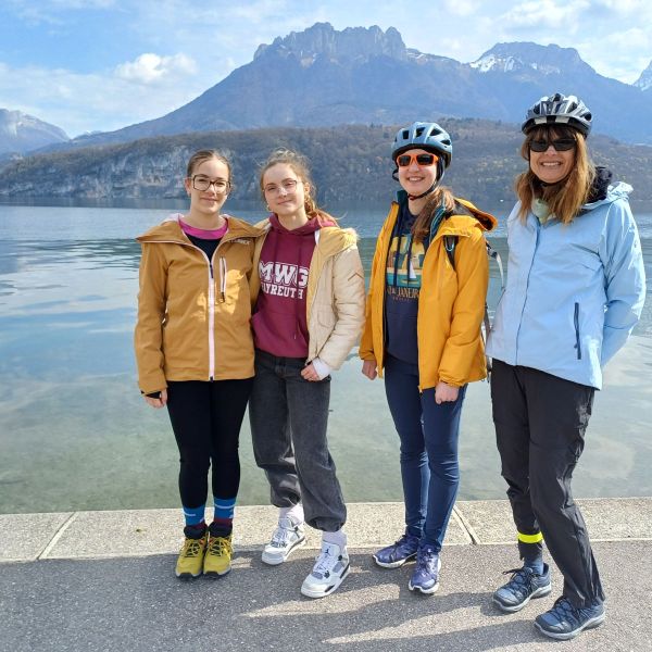 Das bereits über vier Jahrzehnte bestehende Austauschprogramm zwischen dem Lycée St. Michel Annecy und dem MWG konnte auch in 2025/26 wieder stattfinden. Im Gegensatz zu früheren Jahren fuhren die 13 Schüler und Schülerinnen des MWG vom 18.3.-27.3. zuerst nach Frankreich, der Gegenbesuch der Annéciens findet im Juni statt. Es wurden großartige Aktivitäten für uns organisiert: Schneeschuhwandern auf dem auch historisch bedeutsamen Plateau des Glières, eine Fahrradtour am Ufer des Lac d’Annecy, eine Rallye auf dem Markt sowie eine Bootstour und eine Stadtführung. Das Bergdorf Grand-Bornand mit einer Besichtigung eines traditionellen Bauernhauses stand ebenfalls auf dem Programm. Das Wochenende fand in den Familien statt, wobei die Schüler und Schülerinnen z.B. mit Ausflügen nach Paris bzw. in die umliegenden Skigebiete verwöhnt wurden. Die Gruppe bedankt sich herzlich bei den Partnern aus Annecy, den betreuenden Lehrkräften Vanessa Brun und Marie-Claude Foulex, der Schulleitung und der Stadt Annecy für den herzlichen Empfang!