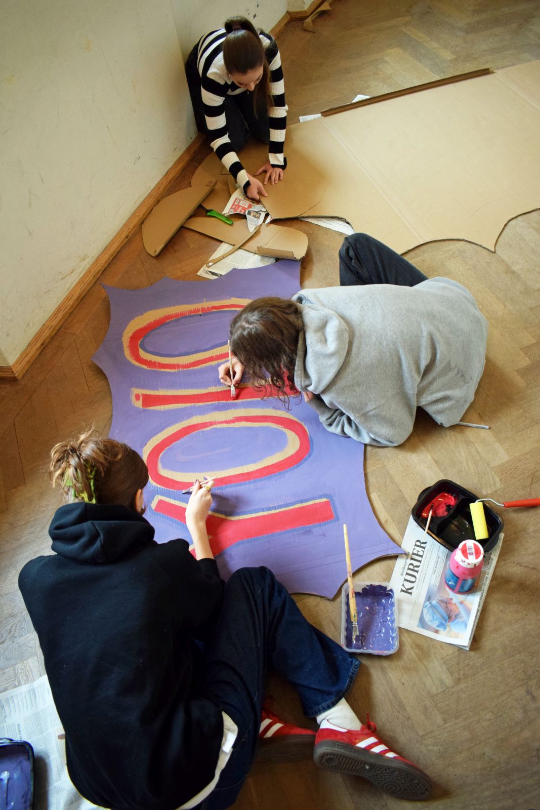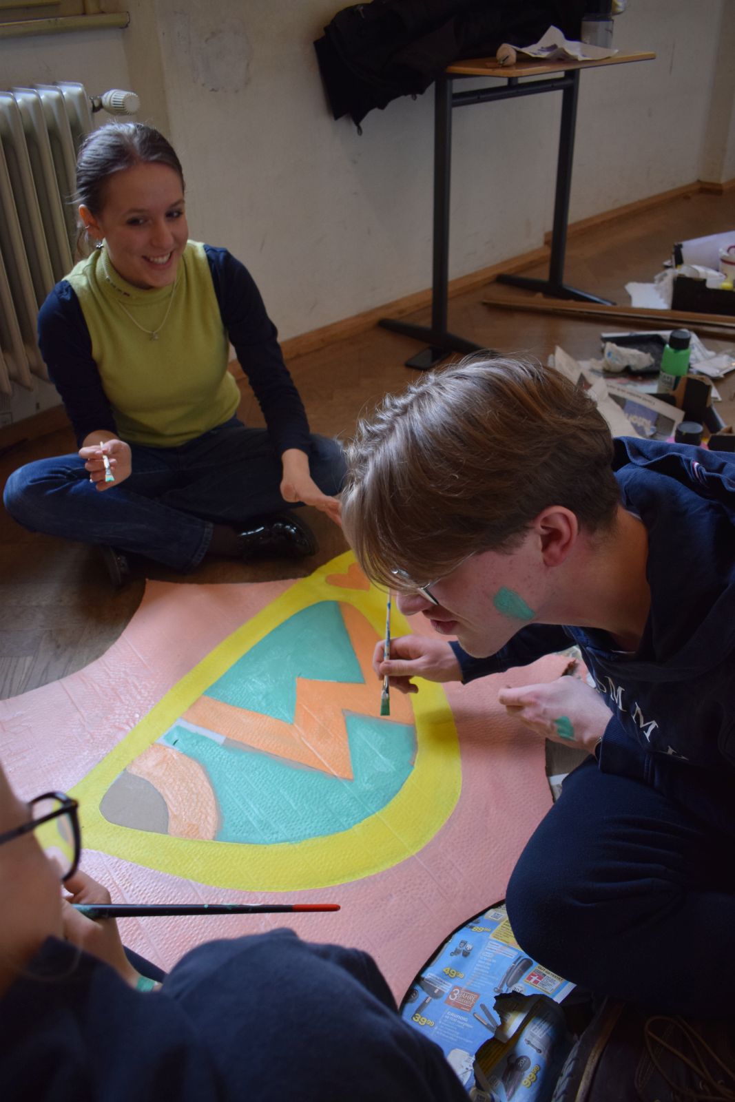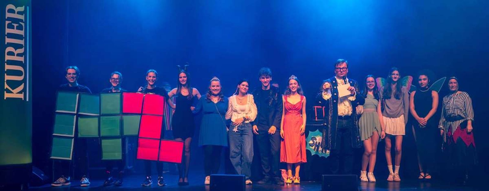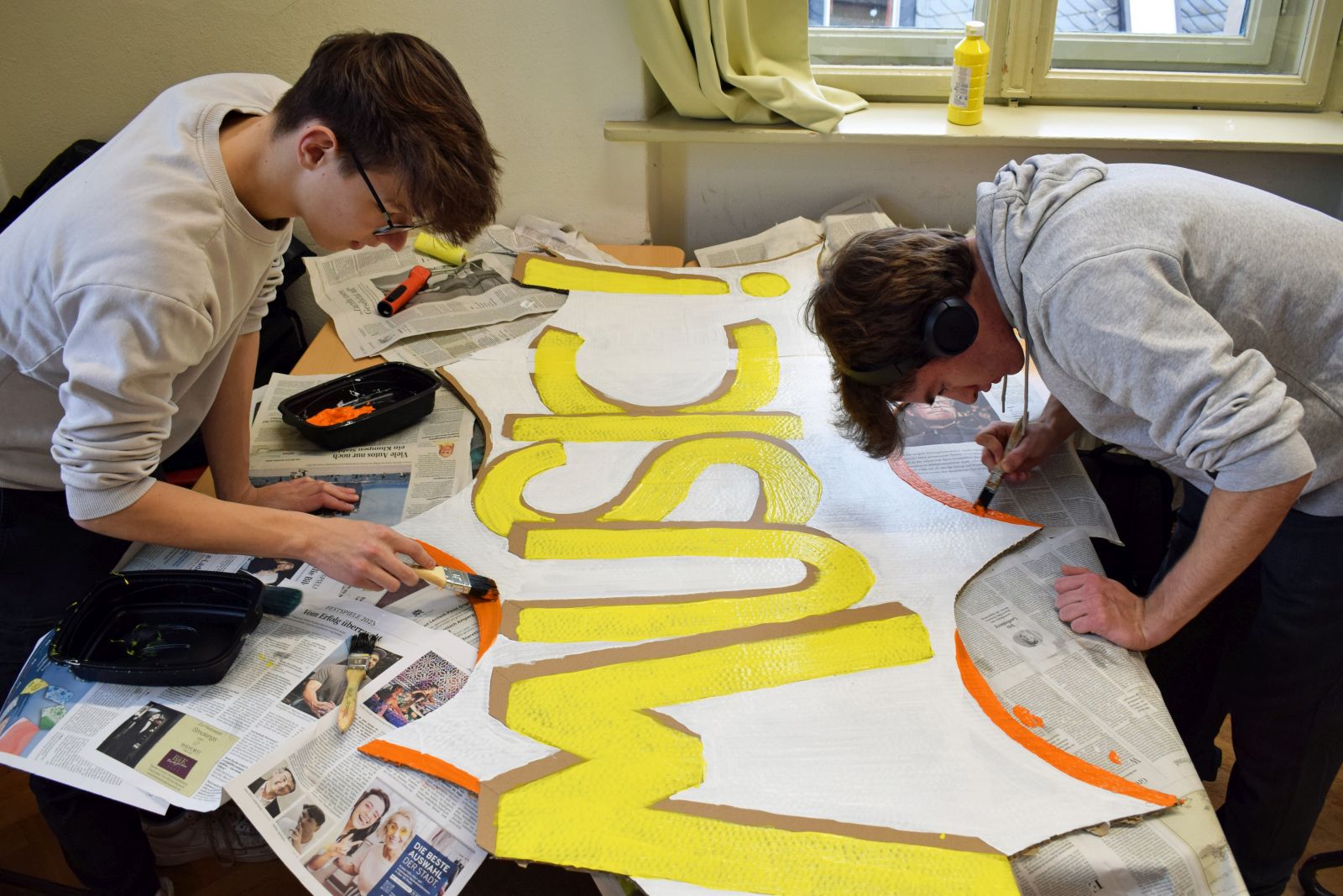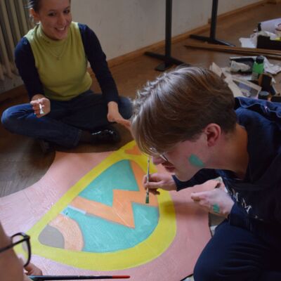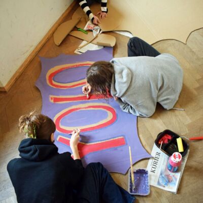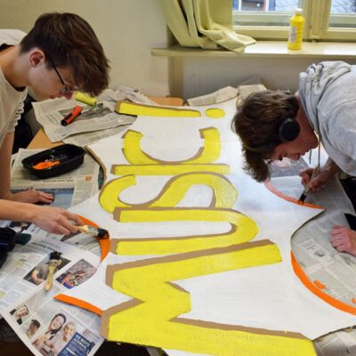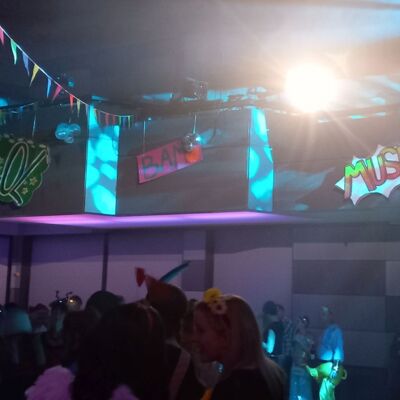 Mitte Januar gab es eine aufregend-freudige Überraschung für die musische Kunst-Kombiklasse 11a/c: der Zeitungsverlag Kurier übermittelte die Nachricht, dass sie die Ausschreibung für den Dekorationswettbewerb des diesjährigen Kurier-Faschings unter den Bayreuther Schulen für sich entschieden hatte. Nun hieß es, unter Zeitdruck farbenfrohe Pop-Art-Schilder zu erstellen, damit rechtzeitig alles bis zur großen Party fertig werden konnte. Auch das Anmontieren der Schilder im Europasaal des Zentrums lag in der Hand der SchülerInnen und ihrer Lehrkraft. Belohnung für die Mühe waren viele positive Rückmeldungen der Kuriergäste über die Dekoration, freier Faschingseintritt und zudem 200 € für die Klassenkasse. Dieser Betrag wird bald bei einer Exkursion eingesetzt und verlängert auf diese Art die Freude darüber bis ins Frühjahr hinein.