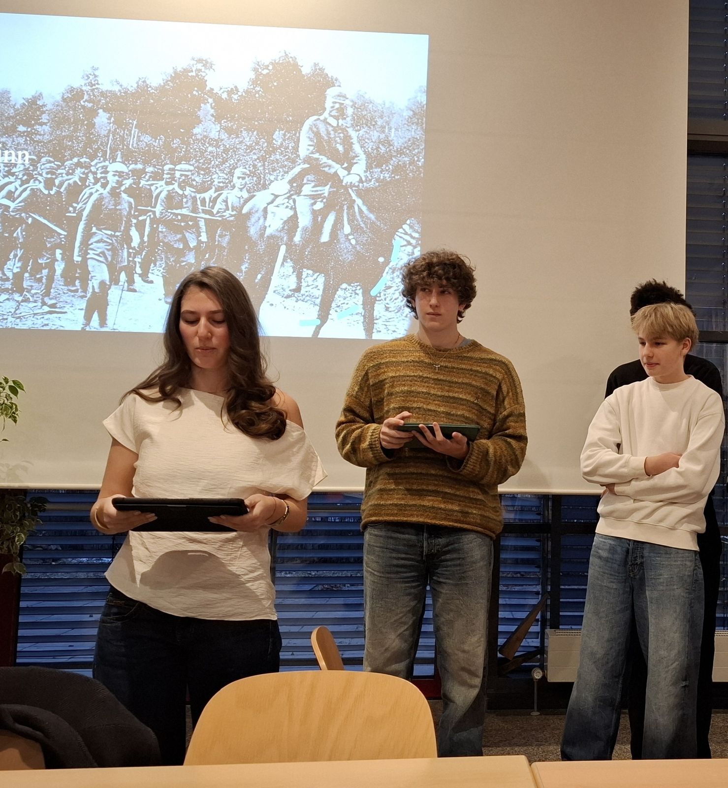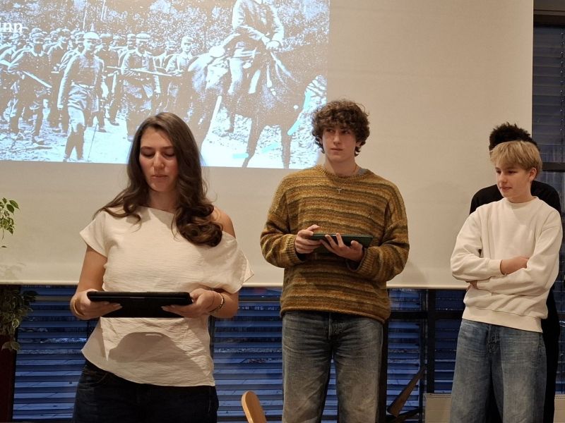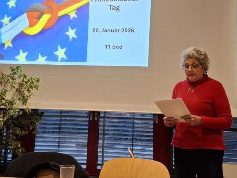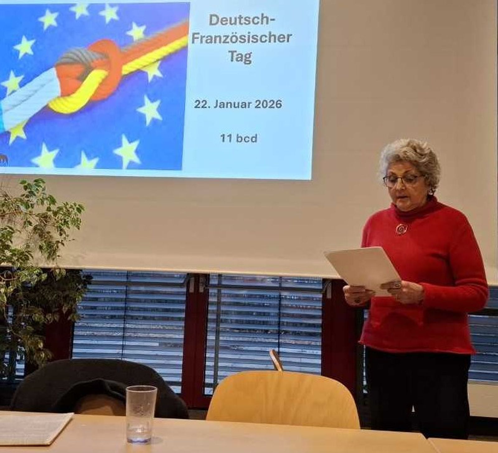 Der diesjährige Deutsch-Französische Tag wurde am MWG unter anderem wieder mit einer Feierstunde für die 11. Klassen begangen, diesmal in der Mensa, zu dem die stellvertretende Schulleiterin Kerstin Zimmermann begrüßte. Ronja Woidig (11d) gestaltete die Veranstaltung gekonnt am Flügel mit. Berührend waren die persönlichen Ausführungen von Annick Servant von der Deutsch-Französischen Gesellschaft Bayreuth, die aus ihrer Familiengeschichte erzählte: Mussten ihr Großvater und Vater noch gegen Deutschland in den Krieg ziehen, war es ihr vergönnt, bereits 1954 zu einem Schüleraustausch ins Nachbarland aufzubrechen und – für sie ein eindrücklicher Moment! – 1962 dem Staatsbesuch Charles de Gaulles in München beizuwohnen. Wie es zu diesem Schritt der Aussöhnung kam, das erläuterten den Stufenkameraden die Schüler des Französischkurses von Beatrix Bode. Steffen Arzberger dankte allen Mitwirkenden und gab seiner Hoffnung Ausdruck, dass Franzosen und Deutsche auch in Zukunft eng zusammenstehen, um ihre gemeinsamen Werte in der Welt zu verteidigen.