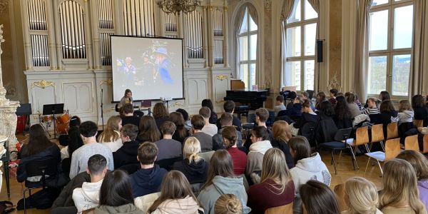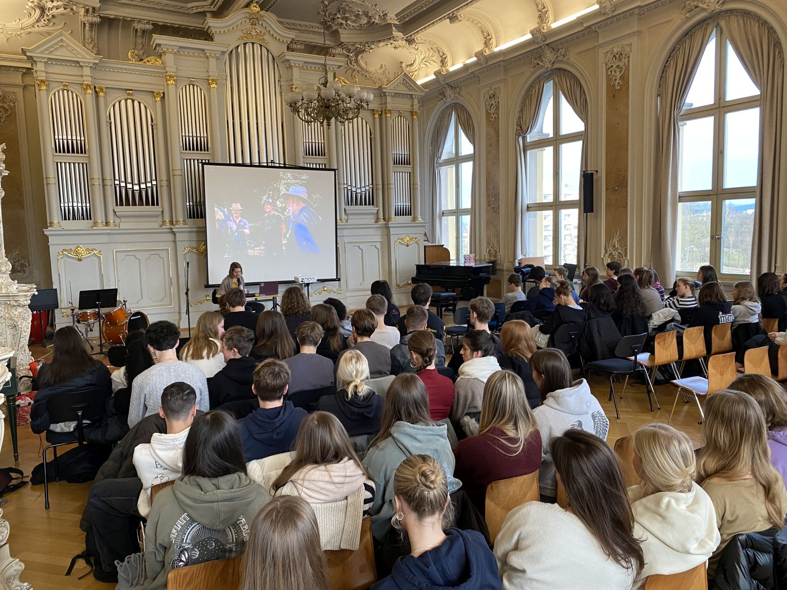 Gebannt lauschten wir der Journalistin Elisabeth Weydt, als sie uns, den 10. Klassen, von ihren Erfahrungen in Ecuador erzählte und aus ihrem Buch „Die Natur hat Recht“ vorlas. Die Reportage handelt von ihren Erlebnissen mit dem Leid und den Ungerechtigkeiten, welche die Natur und viele Menschen dort erfahren, aber auch von den mutigen Menschen, die sich für die Rechte der Natur einsetzen. „Der Mensch ist ja selbst Teil des Ökosystems“, erklärte sie, „das scheinen wir immer wieder zu vergessen.“