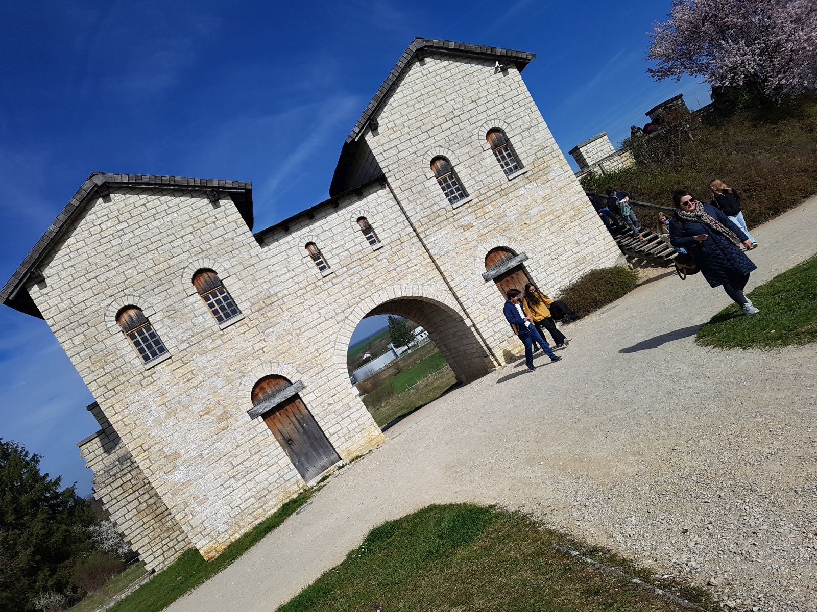 Auf dem Weg zum Römermuseum kamen wir über das Gelände des ehemaligen Kastells, das Teil des Limes war und hauptsächlich Reiter beherbergte. Ein Teil des Nordtores (siehe Foto) wurde wieder aufgebaut und vermittelt einen Eindruck der Wehrhaftigkeit.