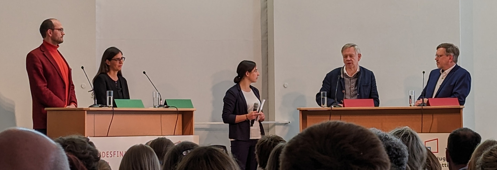 Im Maximilianeum erlebte das Publikum, zu dem u.a. Kultusminister Prof. Dr. Michael Piazolo, der stellvertretende Vorsitzende des Ausschusses für Bildung und Kultus, Tobias Gotthardt, und Landtagsvizepräsident Karl Freller gehörten, eine von allen Beteiligten hochwertig geführte Finaldebatte zum Thema „Soll bei den Landtagswahlen in Bayern die 5-Prozent-Hürde auf 3 Prozent gesenkt werden?“. Erneut konnte Franziska, diesmal auf der Contra-Seite, mit detaillierter Sachkenntnis und präziser Argumentation überzeugen. Als dann bei der Bekanntgabe der Platzierungen Franziskas Name als erster genannt wurde, gleichbedeutend mit dem undankbaren 4. Platz, reagierte das Publikum mit einem vernehmlichen Raunen – offenbar waren viele von dieser Entscheidung überrascht, eine noch bessere Platzierung sicherlich möglich gewesen. Gleichwohl: Einen 4. Platz auf bayerischer Landesebene zu erreichen, ist aller Ehren wert und wir beglückwünschen Franziska herzlich zu ihrer hervorragenden Leistung!