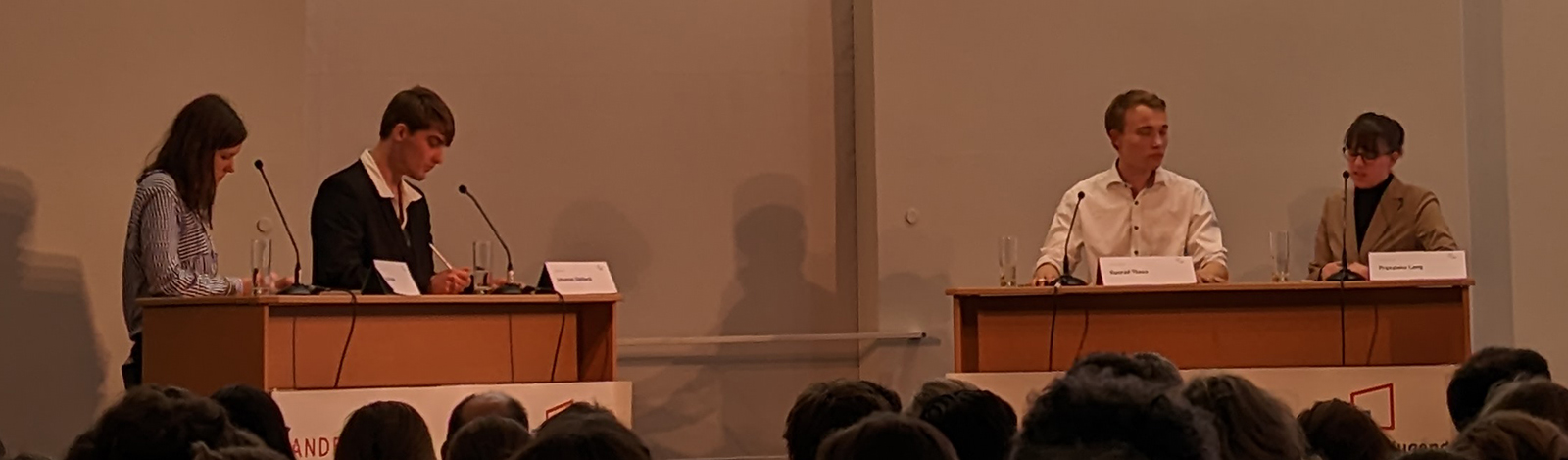 Für das MWG endet somit der diesjährige Wettbewerb Jugend debattiert. Wir bedanken uns bei allen Teilnehmer*innen und Projektlehrkräften für ihr Engagement sowie beim Förderverein für die Kostenübernahme der Selbstbeteiligungen an den Fahrten zum Regional- und Landeswettbewerb. Wir freuen uns bereits auf spannende Debatten im nächsten Jahr!