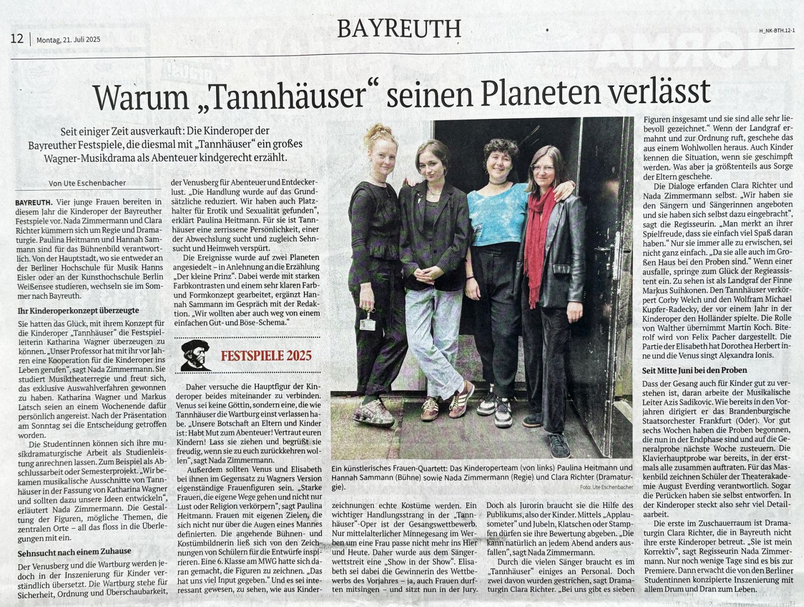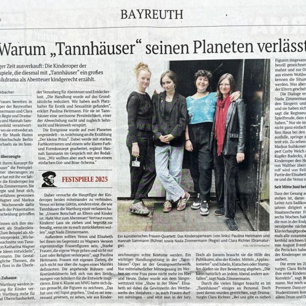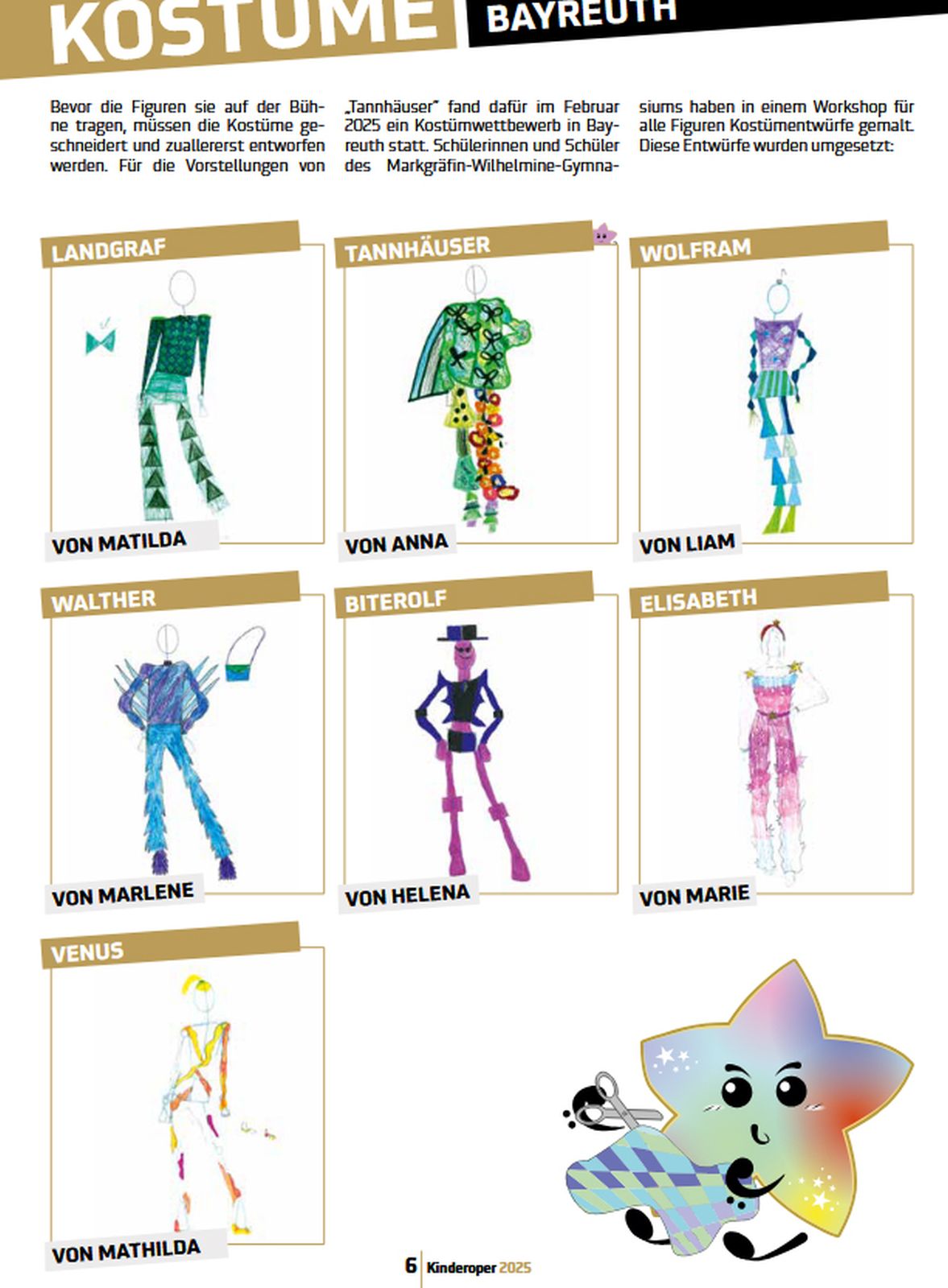 Am 25. Juli 2025 war es endlich so weit: Wir durften bei der Premiere der Kinderoper „Tannhäuser“ erfahren, wie die von der Klasse 6a im Februar entworfenen Kostüme umgesetzt wurden.