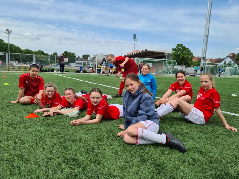 Doch nun der Reihe nach: Nach dem Stadt- und Regionalentscheid war es am 24.05.23 dann endlich soweit und gleich zwei Mannschaften des MWG durften am Bezirksfinale im Mädchenfußball teilnehmen: Die Mädchen der Altersgruppe III (Jahrgang 2009/10), die sich ihre Teilnahme hart erkämpfen mussten, und die Mädchen der Altersgruppe IV (Jahrgang 2011/12), die mangels Gegner ohne vorheriges Spiel direkt im Bezirksfinale antreten mussten. Die Fünftklassmädchen, von denen einige erst zu Schuljahresbeginn in der Schul-AG mit Fußball begonnen haben, wurden zwei Niederlagen gegen Kronach (0:4) und Hof (0:2) Vierte. Trotz des scheinbar eindeutigen Ergebnisses kann man sehr stolz auf diese Spielerinnen sein, die mit großer Leidenschaft und Freude an diesem Turnier teilgenommen und erste Spielpraxis gesammelt haben. Es ist schön zu sehen, junge Mädchen über eine AG für eine Sportart derart begeistern zu können, dass einige von ihnen nun auch im Verein Fußball spielen wollen.