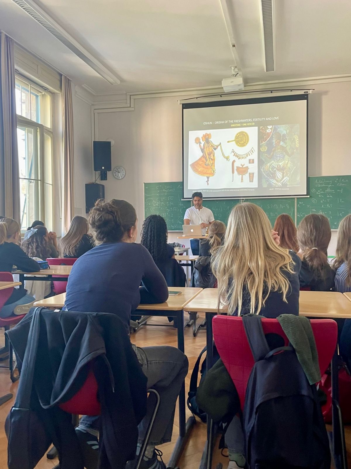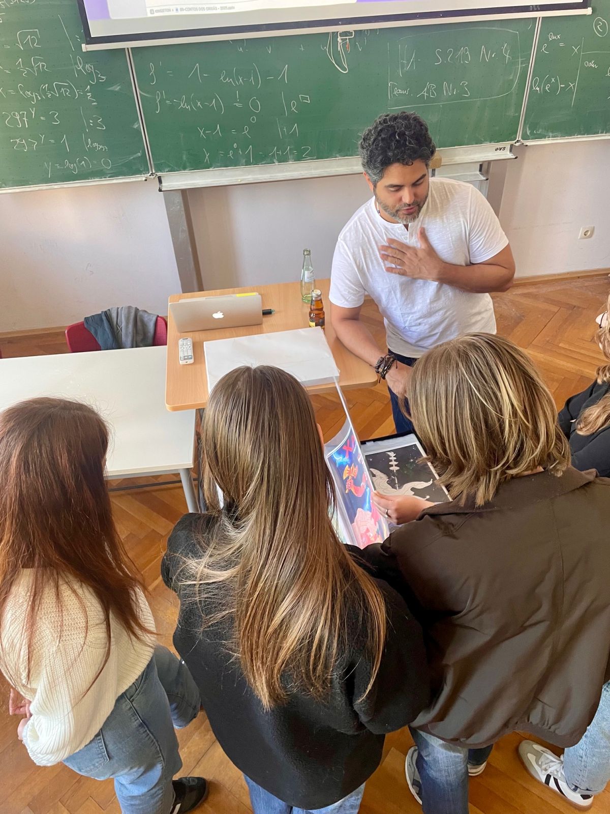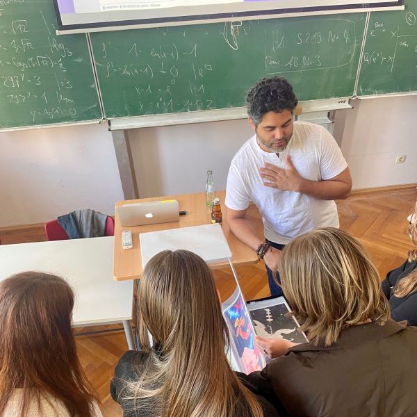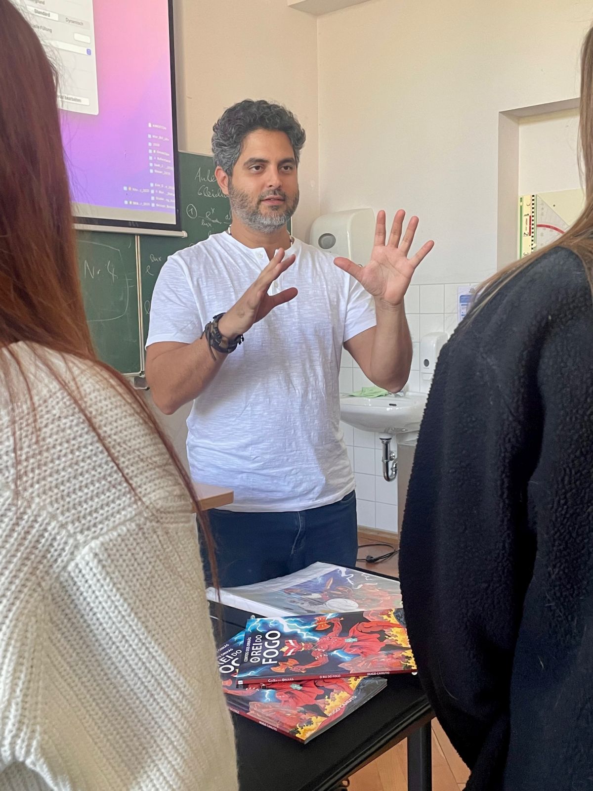 Der brasilianische Comiczeichner Hugo Canuto, der mit seinen Arbeiten international bekannt wurde und regelmäßig zu Vorträgen und Workshops in Nord- und Südamerika sowie in Europa eingeladen wird, war zu Besuch am Markgräfin-Wilhelmine-Gymnasium. Im Rahmen eines Vortrags und Workshops stellte er seinen künstlerischen Ansatz vor: In seinen Graphic Novels beschäftigt sich Canuto mit afro-brasilianischen spirituellen und religiösen Traditionen. Grundlage seiner Arbeit sind sorgfältige Recherchen, die er in eine bildnerisch wie erzählerisch dichte Form übersetzt. Im Gespräch mit den Schülerinnen und Schülern erläuterte er seinen gestalterischen Prozess, sprach über inhaltliche Hintergründe und beantwortete praktische Fragen zur Umsetzung eigener Comicprojekte. Dabei gab er auch Hinweise zur Verbindung von Recherche, Erzählstruktur und Bildgestaltung.