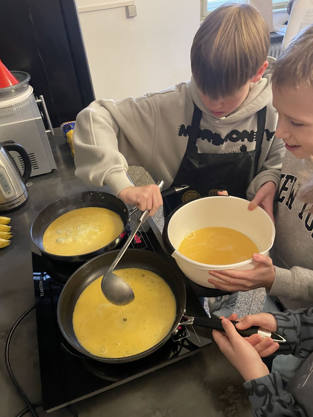 Warum so ein englisches Frühstück eigentlich für den ganzen Tag reicht, war schnell klar: Scrambled eggs, bacon, baked beans, porridge, sandwiches – bei so vielen guten Sachen, die die Schüler im Café Blu zubereiteten, waren die Bäuche schnell voll und alle pappsatt. Und es zeigte sich, dass an dem alten Vorurteil, die englische Küche sei nicht gut, aber mal gar nichts dran ist …