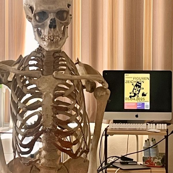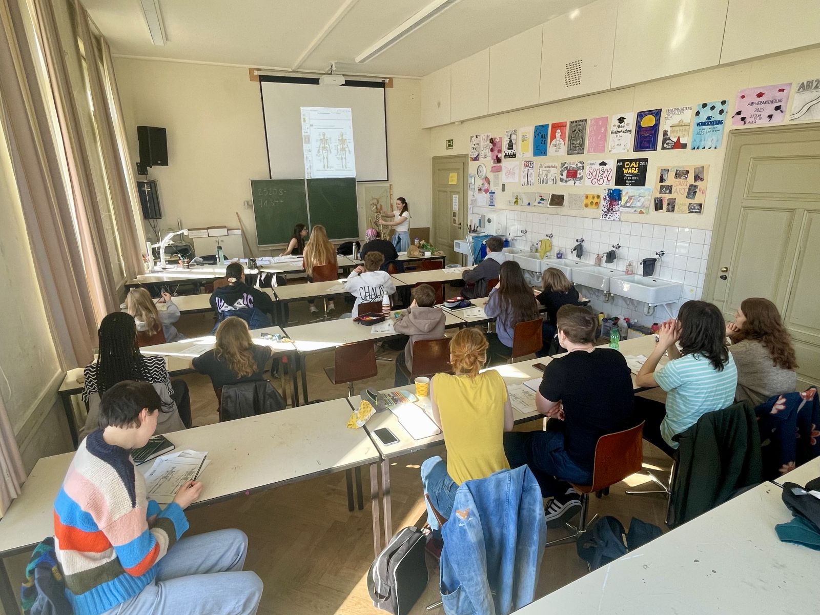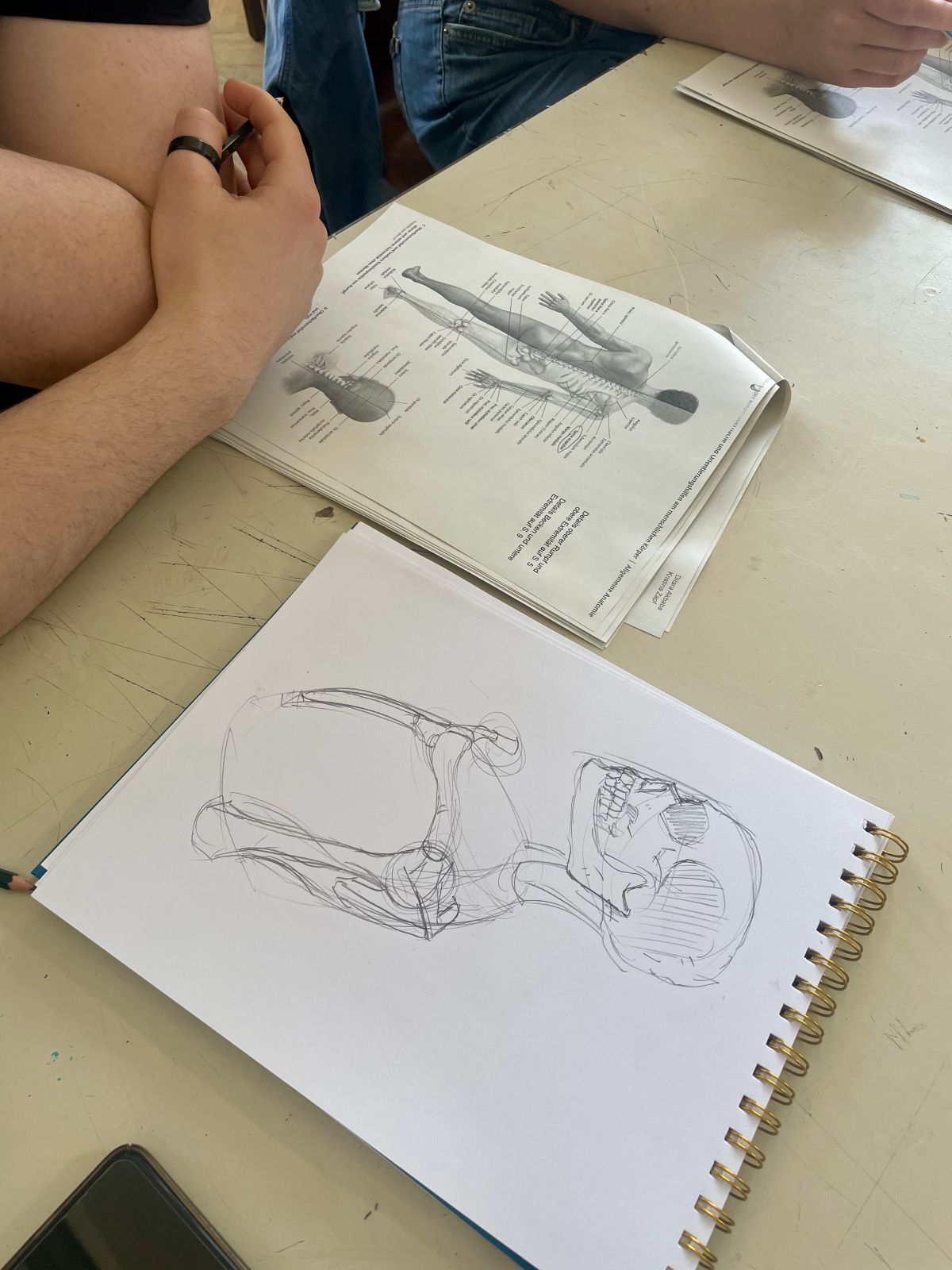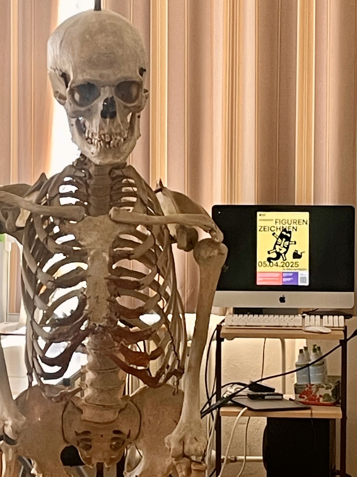 Kristina Zapf gab eine lebendige Einführung in die anatomischen Grundlagen des menschlichen Körpers. Anhand anschaulicher Beispiele erklärte sie den Aufbau des Skeletts und die Funktion des Muskelapparats – ein wesentliches Fundament für jede zeichnerische Auseinandersetzung mit der menschlichen Figur.