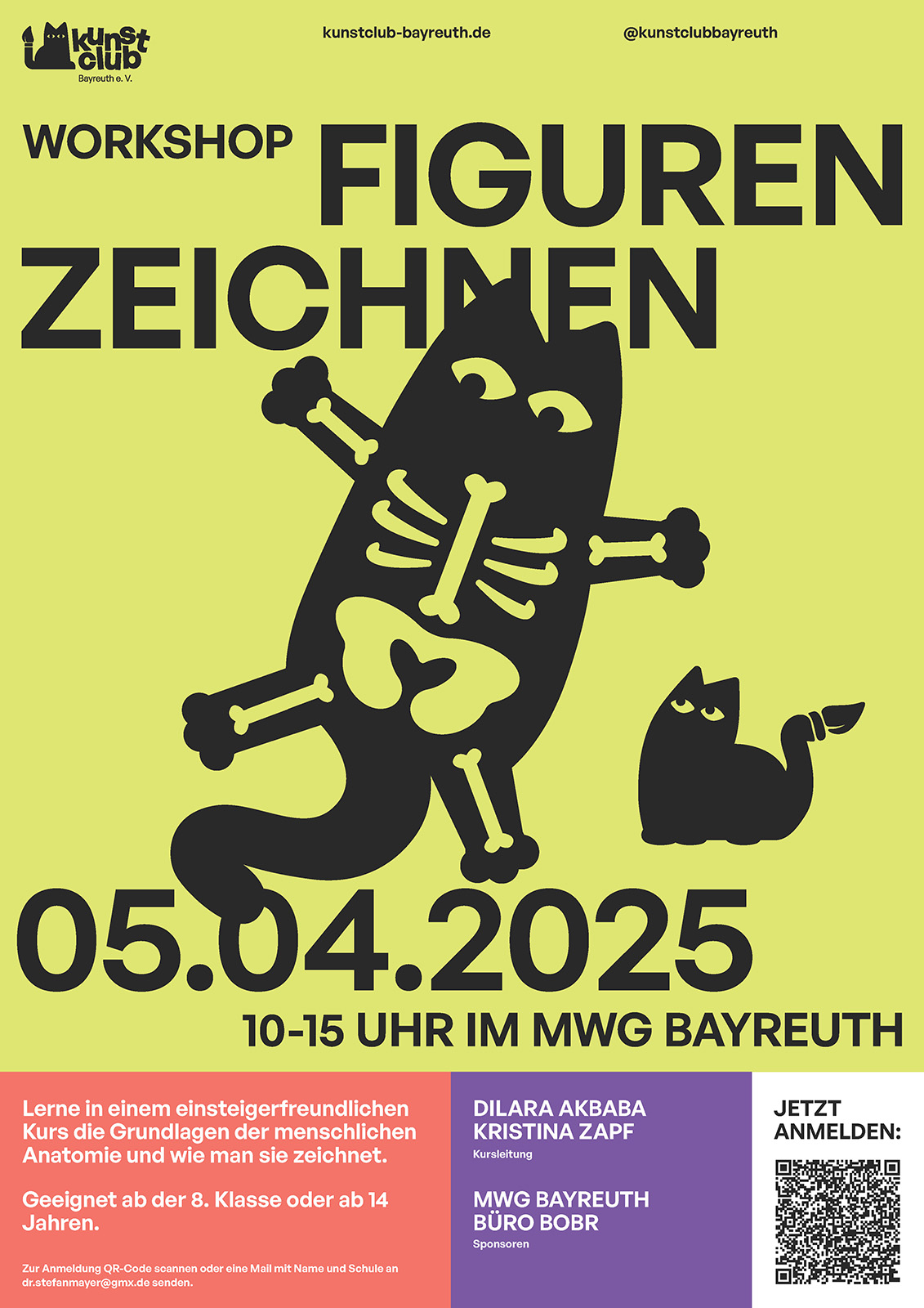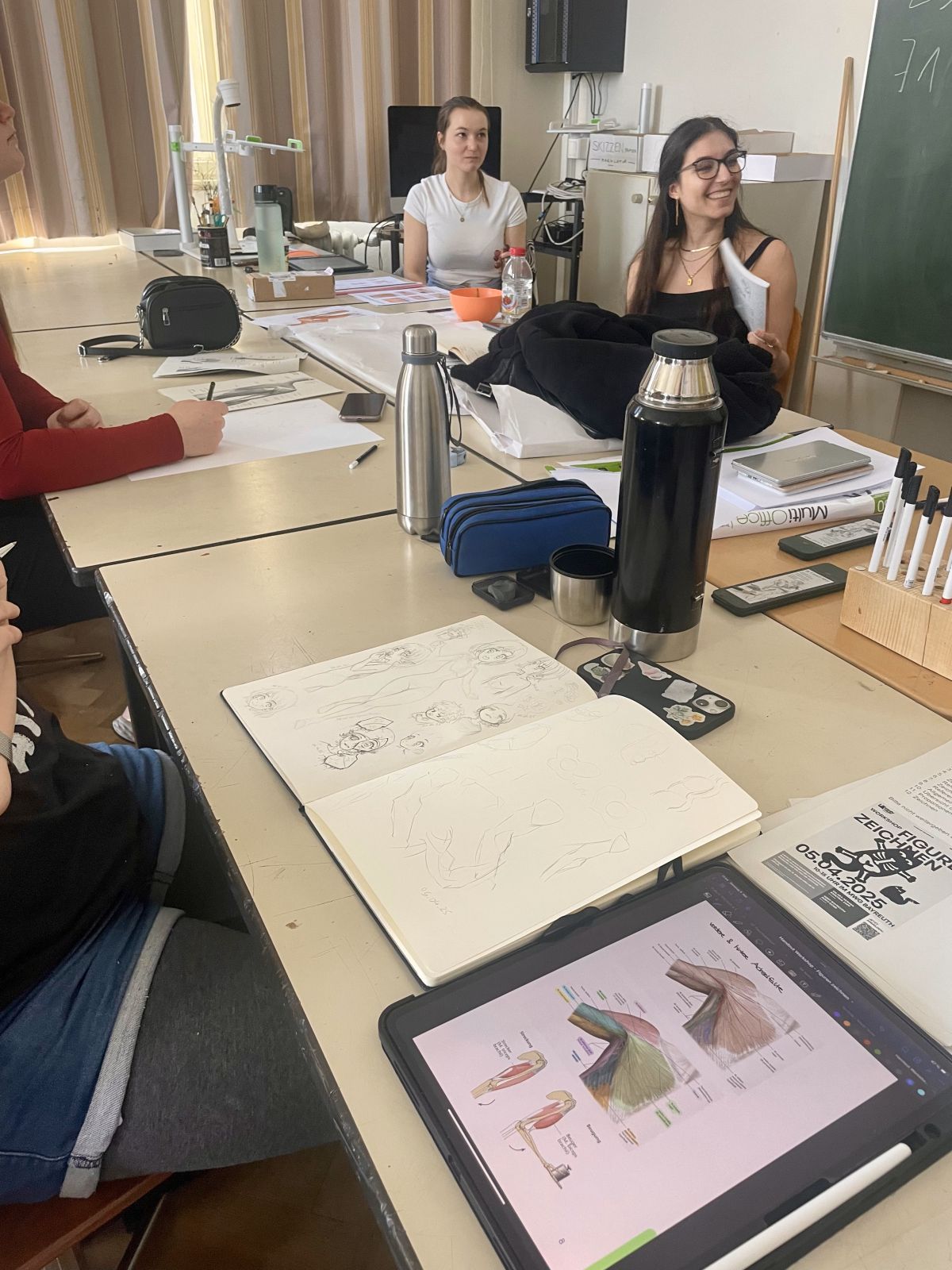 Im Rahmen eines ganztägigen Kunstworkshops zum Thema Figurenzeichnen hatten Schülerinnen und Schüler die Möglichkeit, sich intensiv mit der menschlichen Figur und deren zeichnerischer Umsetzung auseinanderzusetzen. Der Kurs wurde geleitet von Kristina Zapf, Physiotherapeutin, und Dilara Akbaba, Character Designerin – beide ehemalige Abiturientinnen des MWG (Jahrgang 2017) und aktive Mitglieder im Kunstclub e.V. Bayreuth, der junge Talente im künstlerischen Bereich fördert.