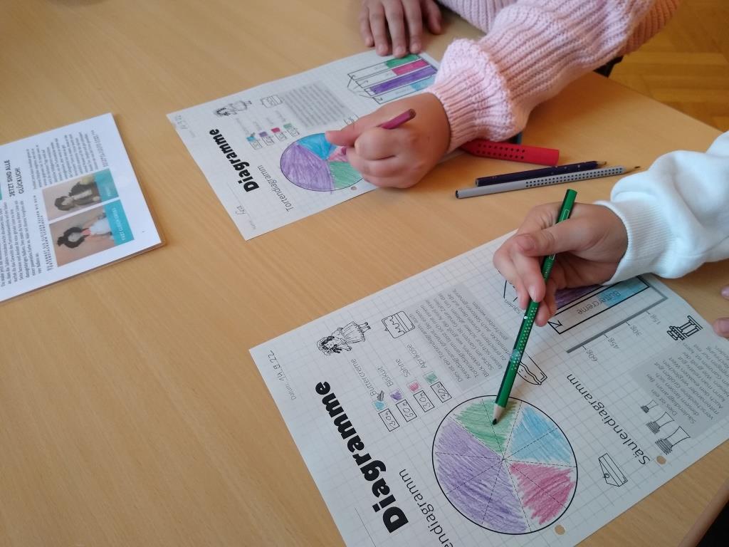 Auch ein Vorwissen zum Erstellen und Lesen von Diagrammen bekamen sie bei einer Station unter Zuhilfenahme einer extra dafür gehäkelten Schichttorte vermittelt.