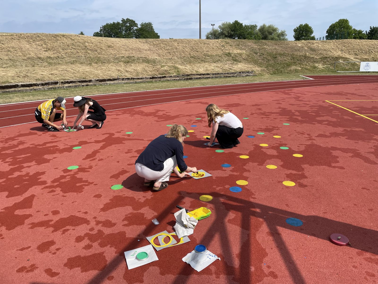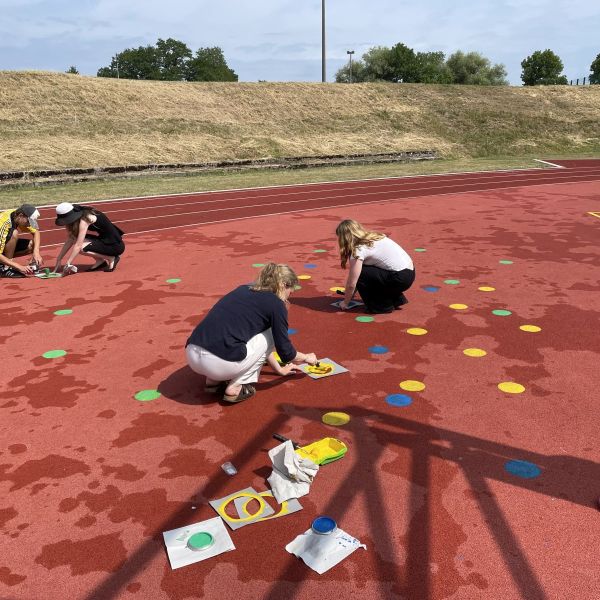 Entstanden ist der Parcours in nur einem Monat im Rahmen eines fächerübergreifenden Projekts der Fachschaftsleitungen Kunst und Sport. Die Kunstgruppe der Klasse 11bd war von der Planung bis zur gestalterischen Umsetzung direkt beteiligt und konnte viele eigene Ideen einbringen.