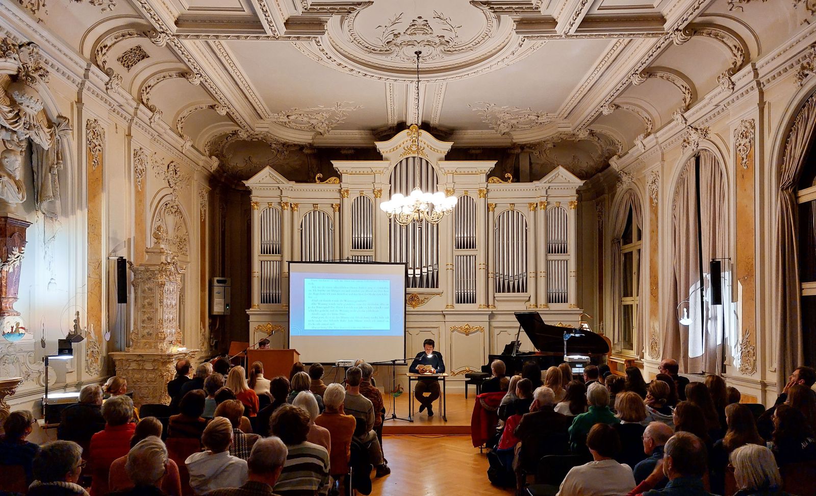 „Ein zauberhafter Abend!“, „Wunderschön!“ und ähnliche begeisterte Kommentare hörte man am 17. November 2023, als die letzten Töne des Boléro de concert von Louis James Alfred Lefébure-Wély verklungen waren, gespielt von Michael Dorn an der Orgel der Aula im Markgräfin-Wilhelmine-Gymnasium. Er rundete musikalisch eine Veranstaltung ab, die sich dem „Kleinen Prinzen“ von Antoine de Saint-Exupéry gewidmet hatte. Im Rahmen des Bundesweiten Vorlesetags hatten Elisabeth Götz, Sophie Woelk, Julien Kurtz und Dr. Jürgen Raithel verschiedene Passagen aus dem Werk vorgetragen. Der Kleine Prinz begegnet einem König, der darauf bedacht ist, jeweils nur das zu befehlen, was auch geleistet werden kann; er trifft auf einen Laternenanzünder, der scheinbar sinnlose Vorschriften befolgte, dessen Tätigkeit aber ästhetischen Wert hat, und er kommt einem Fuchs näher, der ihm das Wesen der Freundschaft und Liebe erläutert. In das Leben und Werk des Autors führte Dr. Katharina Städtler ein; die Vorlesepassagen wurden inhaltlich verbunden und in Beziehung zueinander gesetzt von Dr. Angela Hager vom Evangelischen Bildungswerk. Dr. Steffen Arzberger, der die Veranstaltung organisiert hatte, dankte den genannten sowie Uta Schütze und Julien Kurtz für ihre musikalischen Beiträge am Flügel – Beethoven, Chopin und Medtner – sowie Katrin Buchzik-Weber für die stimmungsvolle Gestaltung des Saales mit Projektionen des Kleinen Prinzen. Beschwingt begaben sich die Zuhörer nach eineinviertel Stunden literarisch-musischen Genusses zum Buffet des Schulcafés blu, das unter der Leitung von Sarah Rutzenhöfer mit Fingerfood und einer Auswahl verschiedener Getränke schließlich auch für leiblichen Genuss sorgte.