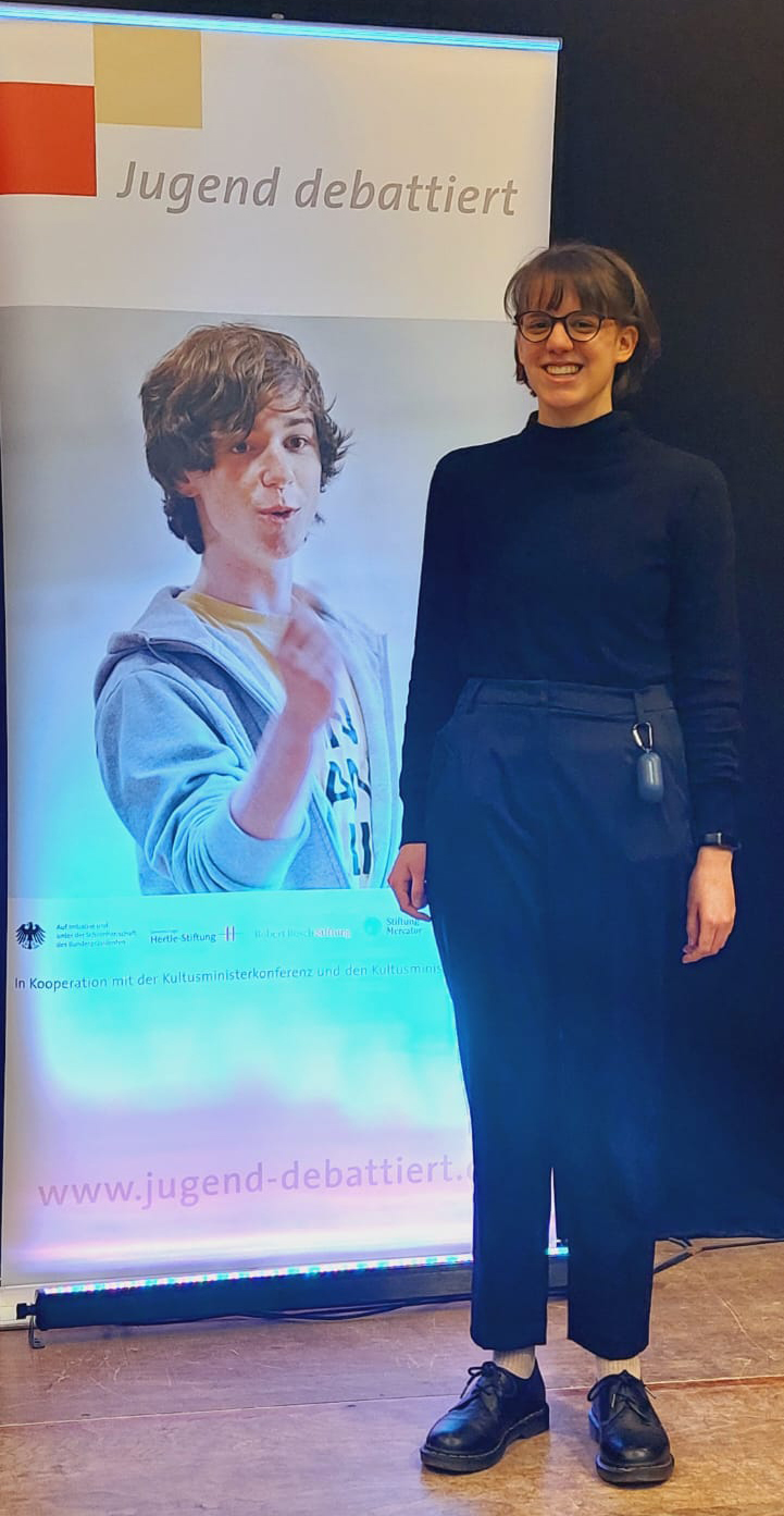 Am 15.2.2023 nahm das MWG am Regionalentscheid „Jugend debattiert” in Münnerstadt teil. In der Altersgruppe 2 traten aus der 10d Justus Gallert und aus der Q11 Franziska Lang an. Franziska schaffte es ins Finale, in dem sie in einer sehr hochwertigen Debatte zum Thema „Soll in unserer [Stadt / Gemeinde] ein durch Los besetzter Jugendrat eingeführt werden?“ die Jury erneut überzeugen, den zweiten Platz erringen und sich damit für den Landesentscheid am 24. April in München qualifizieren konnte. Wir freuen uns über dieses Ergebnis und gratulieren Franziska herzlich zu ihrem Erfolg!