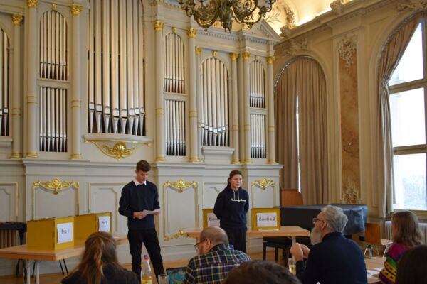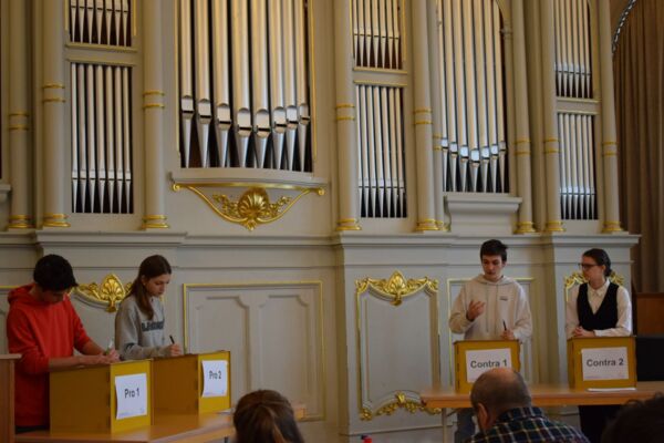 Am 18.01.2023 fand am MWG der Schulentscheid „Jugend debattiert” statt. Der deutschlandweit verbreitete Wettbewerb, bei dem sich Schülerinnen und Schüler in Sachen Rhetorik und Debatte messen, hat auch am MWG jahrelange Tradition. Nachdem sich die Finalisten am Vormittag in zwei Halbfinaldebatten bis ins Finale hatten durchsetzen können, kam es um 13:30 Uhr zum großen Finale zwischen Justus Gallert und Laura Finke auf der Pro-Seite und Franziska Lang und Johannes Haendle auf der Contra-Seite. Debattiert wurde über das Thema „Sollen Angriffe auf Kunstwerke härter bestraft werden?”.