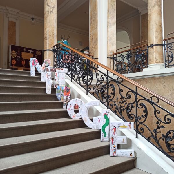 Parallel dazu entstanden im Kunstunterricht im ersten Halbjahr auch große 3D Buchstaben, die zum Thema Mythologie von den Ägyptern bis zur Römer Zeit bebildert wurden und den Schüler*innen bewusst machten, wie tief diese Geschichten in unserer Gesellschaft verankert sind.