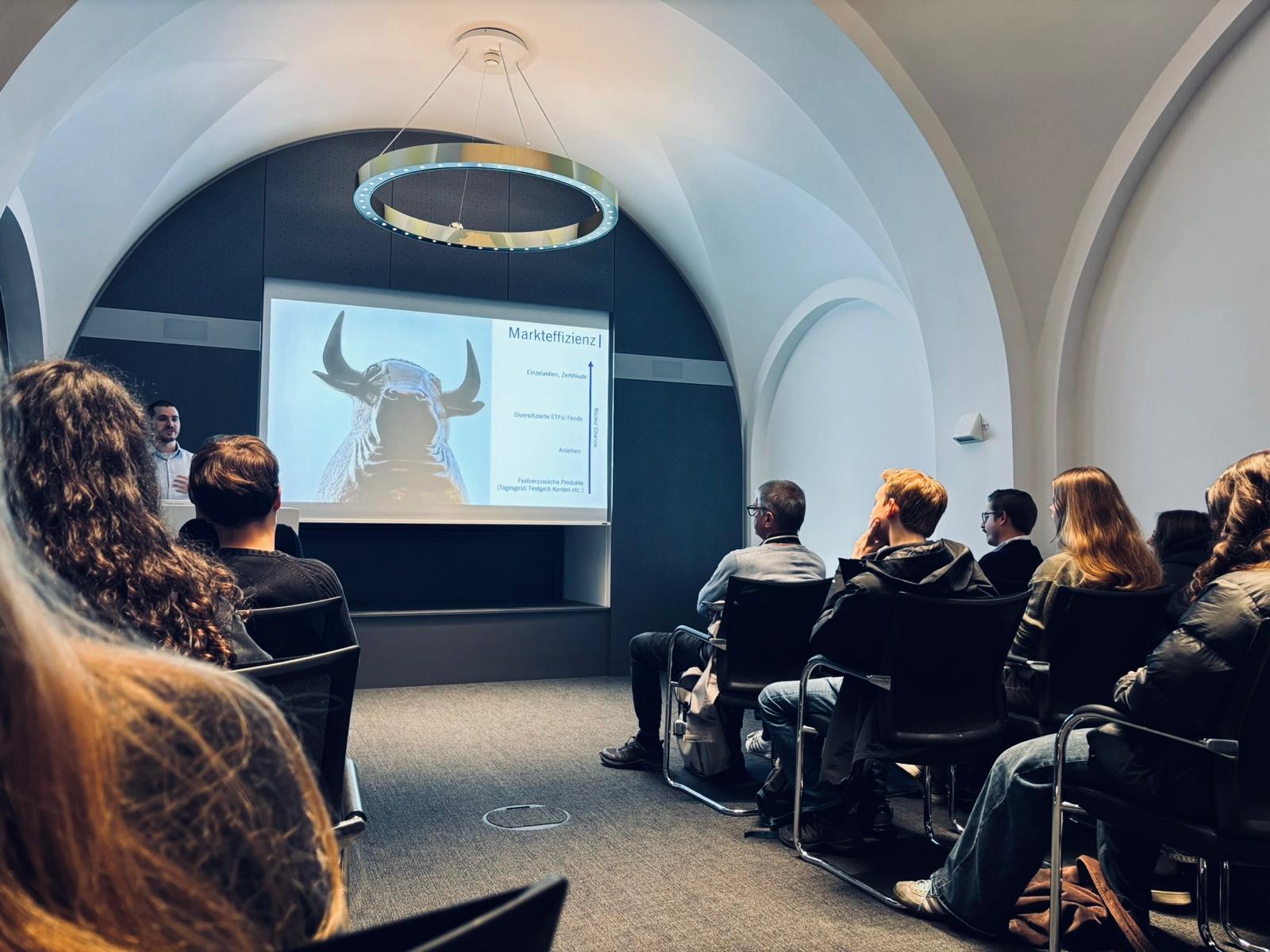 Nach einer frühen Abfahrt um 6:00 Uhr erreichte die Gruppe gegen Vormittag die Frankfurter Wertpapierbörse. Dort erhielten die Jugendlichen die seltene Gelegenheit, einen Blick auf das berühmte Handelsparkett zu werfen – einen Ort, den man sonst meist nur aus dem Fernsehen kennt. Im Anschluss folgte ein Fachvortrag, der sich mit der Bedeutung der persönlichen Altersvorsorge in Zeiten wirtschaftlicher Unsicherheit auseinandersetzte. Dabei wurde den Schülerinnen und Schülern eindrucksvoll vor Augen geführt, wie wichtig Eigeninitiative und Finanzbildung sind, um zuversichtlich in die Zukunft blicken zu können. Besonders positiv hervorzuheben war die fachliche Tiefe und Neutralität des Vortrags, der die Jugendlichen zum Nachdenken über ihre eigene finanzielle Zukunft anregte.