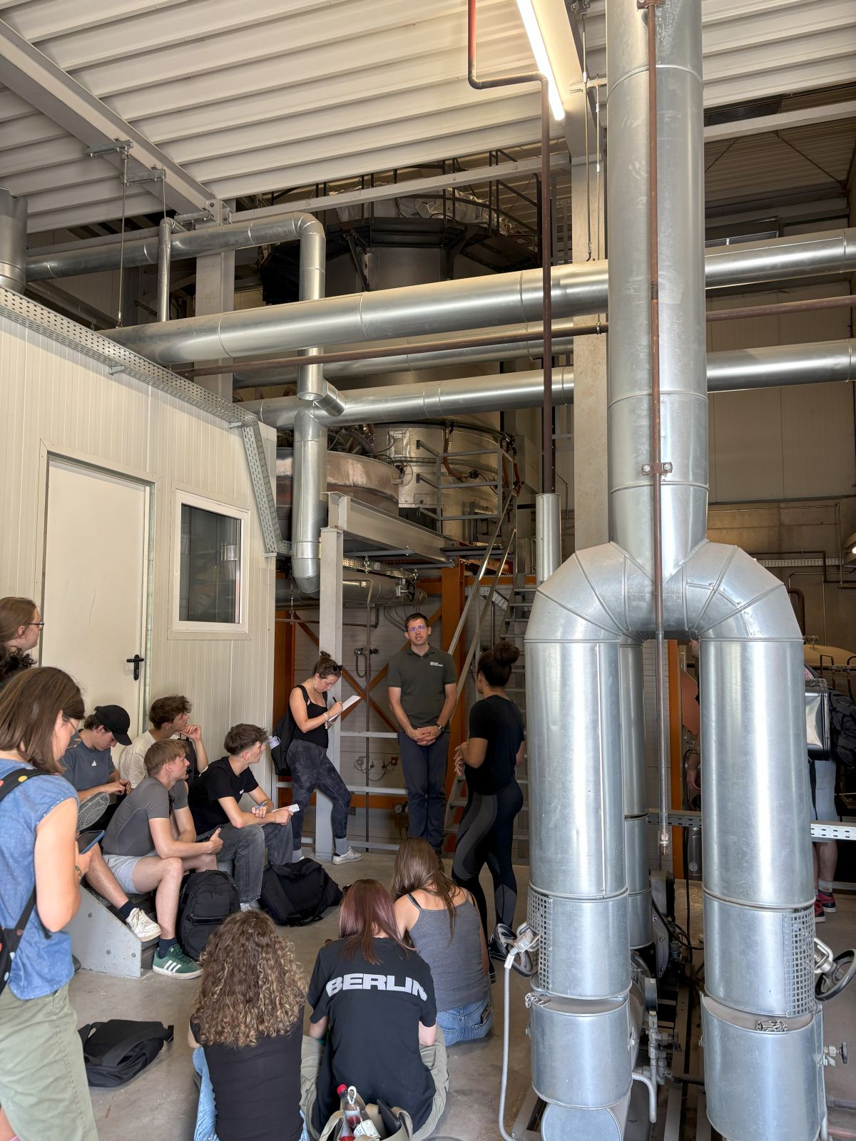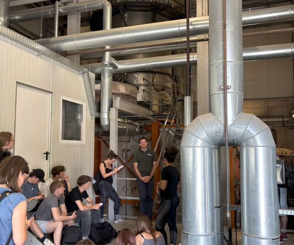 Im Anschluss daran gab uns Sebastian Thiem, der Leiter der Landwirtschaftlichen Lehranstalten in Bayreuth, eine anschauliche und informative Führung zum Thema Erneuerbare Energien. Der Fokus lag auf dem mit Hackschnitzeln befeuerten Biomasseheizkraftwerk, das über ein Nahwärmenetz die Gebäude auf dem Gelände und in der Umgebung mit Wärme versorgt – ein Aspekt, der vielen bis dahin unbekannt war.