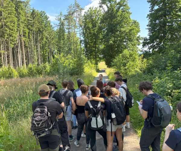 Um ein Thema wirklich begreifen zu können, begegnet man am besten dem Original. Deshalb nutzte ein Geographiekurs der Q12 das Thema „Wald“ für eine geographische Exkursion: Unter der Leitung von Isabel Fichtner, Stellvertretende Forstbetriebsleiterin bei den Bayerischen Staatsforsten, erhielten die Schülerinnen und Schüler Einblicke in die Forstwirtschaft und die aktuellen Herausforderungen für den Wald. Hervorgehoben wurden zuerst die vielfältigen Funktionen des Waldes, der nicht nur CO2 und Wasser speichert, den Boden schützt und die Luft filtert, sondern auch Lebensräume für Tiere bietet und Nutzungsmöglichkeiten für den Menschen schafft.