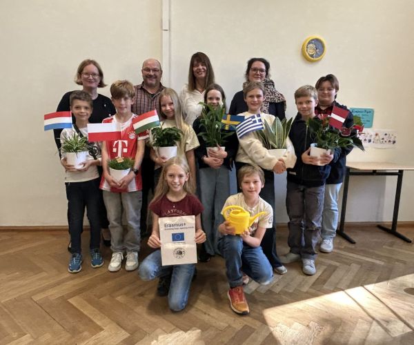 Die Europäische Union ist ein Verbund von 27 Staaten, die zu einem gemeinsamen Staatenbund zusammenwachsen soll. Die Schülerinnen und Schüler der 5. Klassen, die im Schuljahr 2025/26 neu an das MWG gekommen sind, müssen auch noch zu einer Einheit zusammen- und zu Abiturienten heranwachsen. Jede Klasse soll sich um fünf bzw. sechs Pflanzen kümmern und die Entwicklung dieser bis zum Abitur verfolgen. Jede Pflanze ist einem Land zugeordnet, um die europäische Idee zu repräsentieren. Dank der finanziellen Hilfe des Erasmus+ Projekts lernen unsere Kinder die Verantwortung für die Pflanzen zu übernehmen.