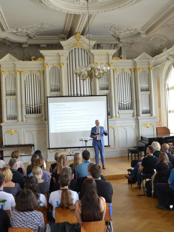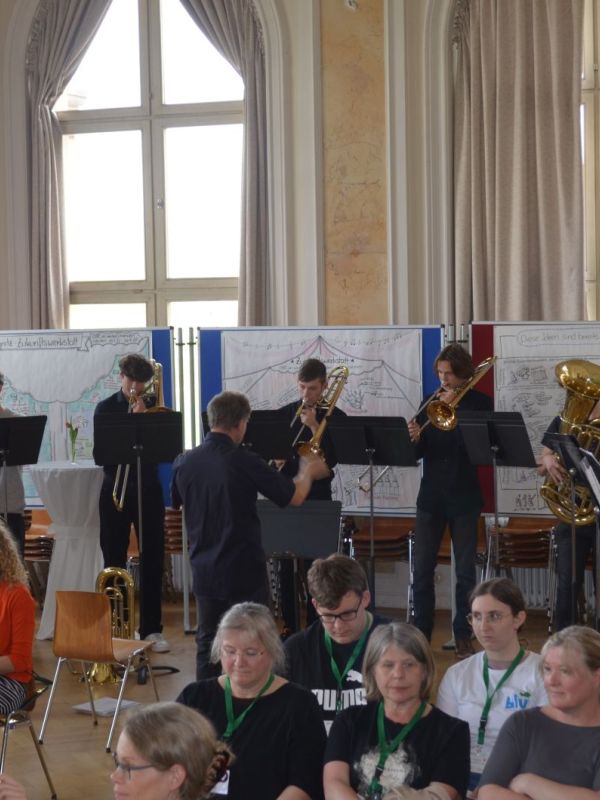 Das MWG ist eine von sieben Schulen in Oberfranken, die am Schulprojekt „Bildung für nachhaltige Entwicklung“ (BNE) der Universität Bayreuth teilnimmt. Zum gegenseitigen Kennenlernen und Austausch über den Projektverlauf fand am 08.04.24 in der Aula des MWG der BNE-Fachtag statt. Moderiert wurde die Veranstaltung von der Projektleiterin Kirstin Wolf. Der Einladung gefolgt war auch der Leiter der Stabsstelle für BNE am Kultusministerium, Ministerialrat Philipp Pacius, der Neuigkeiten zu BNE vorstellte und die zunehmende Bedeutung in der Schulentwicklung betonte. Bei einem Gallery Walk schilderten die beteiligten Schulen ihre bisherigen Erfahrungen im Bereich BNE. Musikalisch sorgte das Blechbläserensemble für Abwechslung und gute Stimmung, kulinarisch verwöhnte das Café blu die Gäste. Insgesamt war es ein bereichernder, motivierender Austausch mit gegenseitiger Ermutigung, auf einem guten Weg zu sein, zukunftsorientierte, gerechte und nachhaltige Bildung zu gestalten.