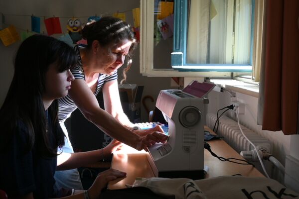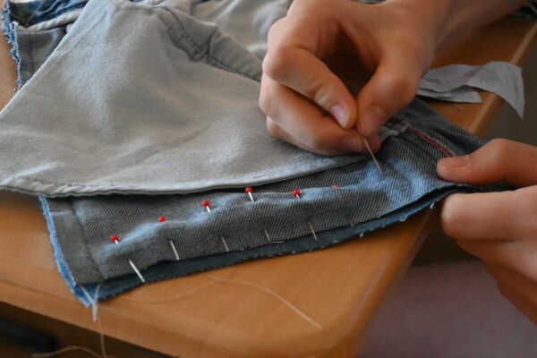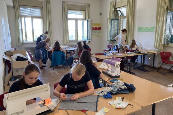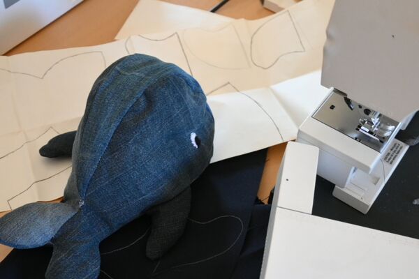 Die SchülerInnen der 7. Klasse nähen dabei aus alten Klamotten und Stoffen Neues, z.B. wurde eine alte Hose zu einer Tasche umgenäht oder aus einem Vorhang ein Wal-Kuscheltier hergestellt. Mitgeholfen hat auch Alina vom Laden VerSTOFFlicht.