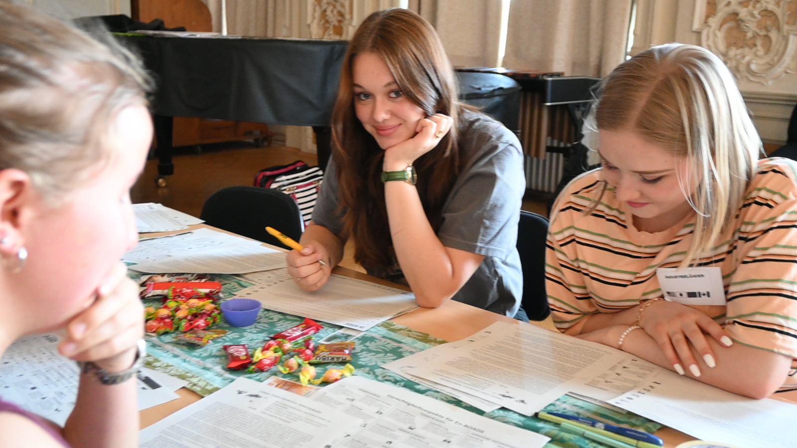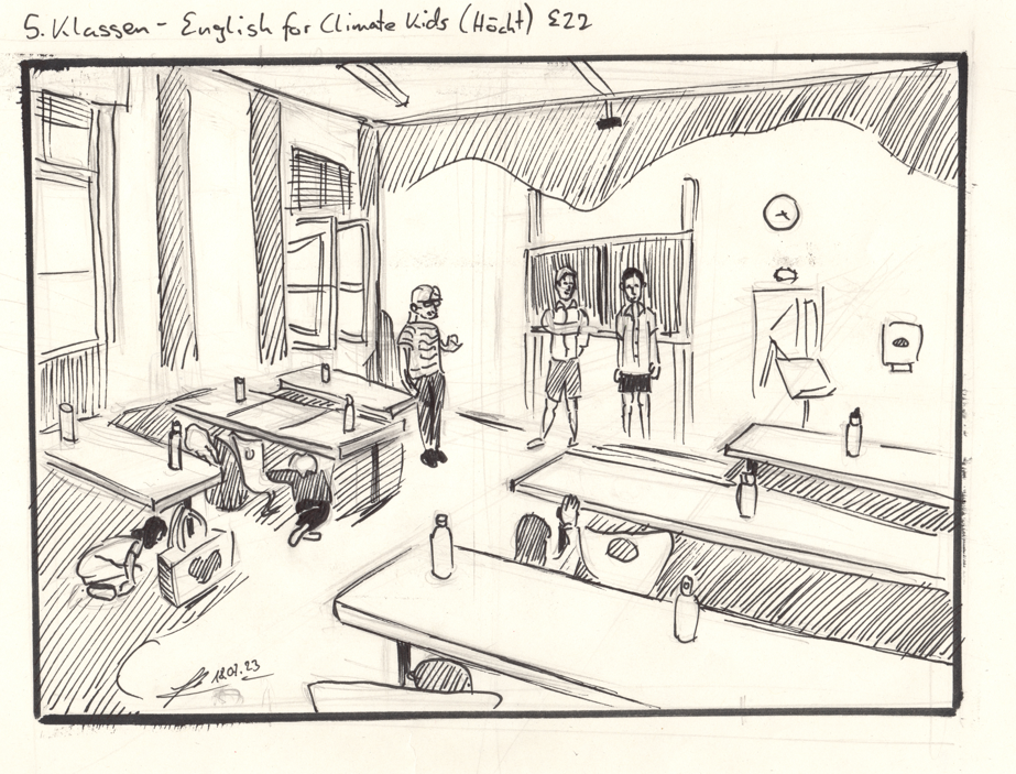Hello everyone, auch am Klimatag ist das MWG bilingual unterwegs. Vier Elftklässler aus dem English Conversation Kurs bringen den Neuen an der Schule Vokabeln aus dem Englischen zum Bereich Umwelt bei. Denn während die Kleinen anhand eines poetischen Textes puzzleartig die Zusammenhänge wiederherstellen sollen, erweitern sie zusätzlich ihren Wortschatz in der Fremdsprache Englisch. Das Hauptaugenmerk liegt dabei auf dem Thema Wetter, welches die Kleinen mit ihren neu erlernten Vokabeln beschreiben sollen.