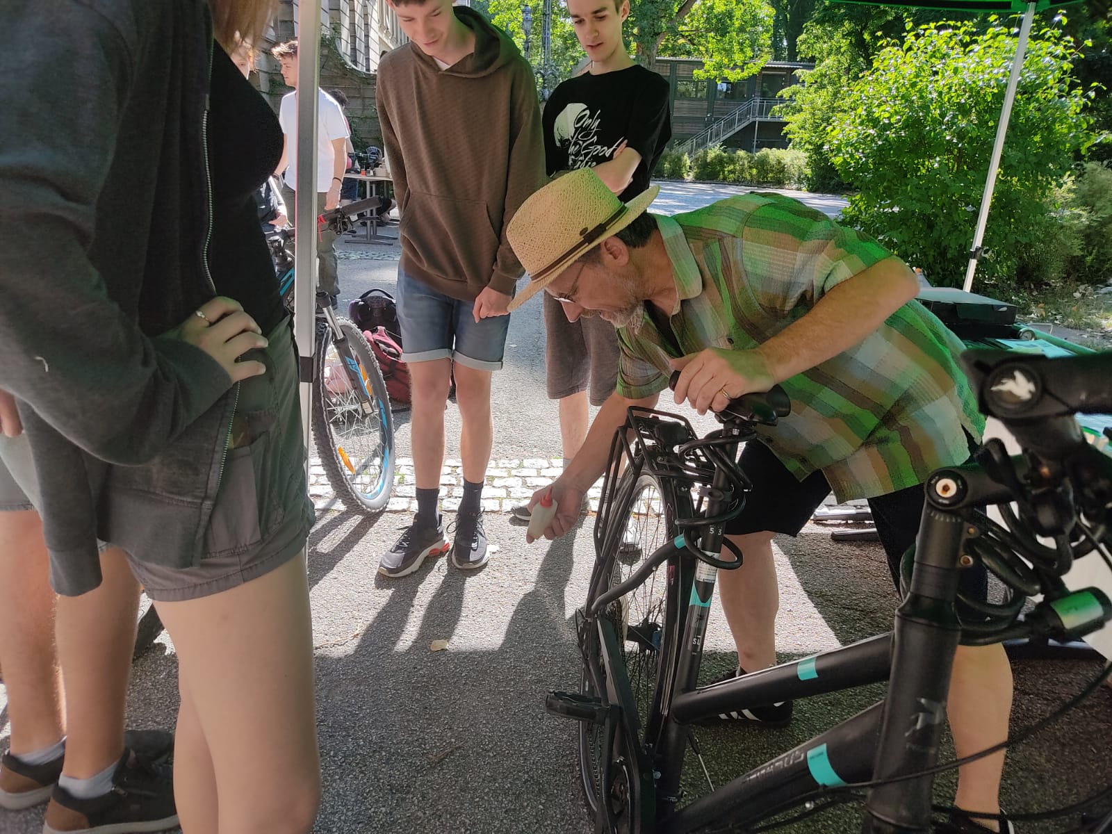 Und was machst du heute am Klimatag? „Ich bin leidenschaftlicher Fahrradfahrer, deswegen habe ich mich für diesen Workshop ‚Fahrradreparatur‘ eingetragen.“