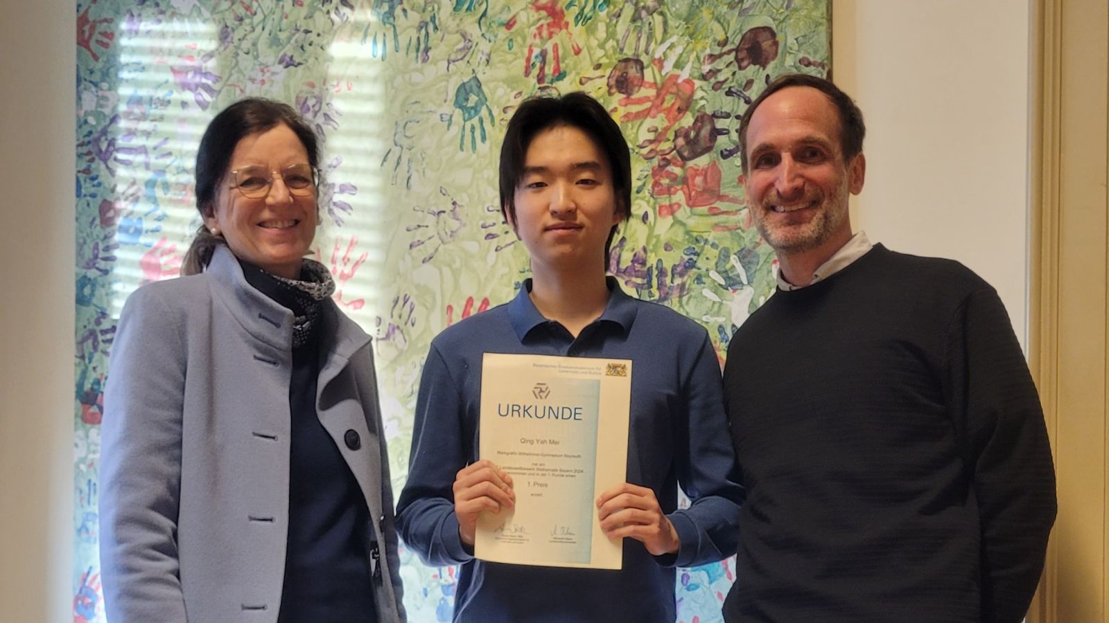 Herzlichen Glückwunsch an unseren talentierten Schüler Tommy aus der Klasse 10d! Er hat in der ersten Runde des Landeswettbewerbs Mathematik einen 1. Preis errungen und damit eine herausragende Leistung gezeigt. Besonders bemerkenswert ist, dass ihm nur ein einziger Punkt zum perfekten Ergebnis gefehlt hat. Tommy hat mit seinem mathematischen Können und seinem Engagement die ganze Schulgemeinschaft beeindruckt. Wir sind gespannt auf die nächsten Erfolge von Tommy und wünschen ihm viel Erfolg für die kommenden Runden des Wettbewerbs.