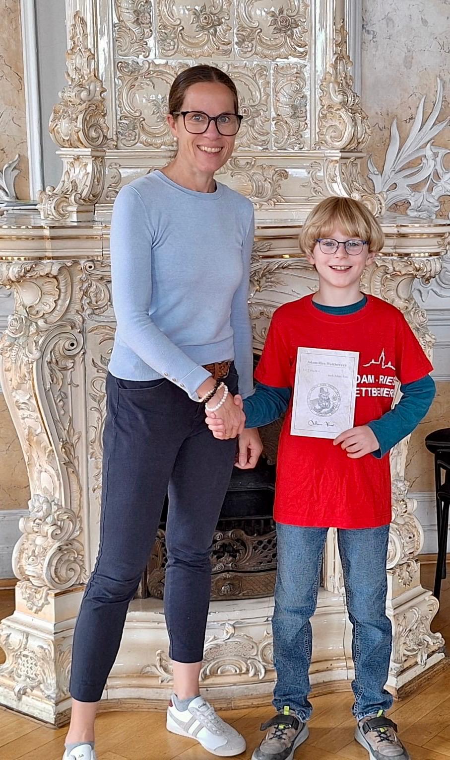 Wir freuen uns sehr, bekannt geben zu dürfen, dass Emil aus der 5. Klasse beim diesjährigen Adam-Ries-Wettbewerb den 2. Platz belegt hat. Dieser renommierte Mathe-Wettbewerb, der Schülerinnen und Schüler aus Sachsen, Bayern/Oberfranken, Thüringen und Tschechien einbezieht, zielt darauf ab, mathematisches Interesse zu wecken und Freude am Knobeln zu vermitteln.