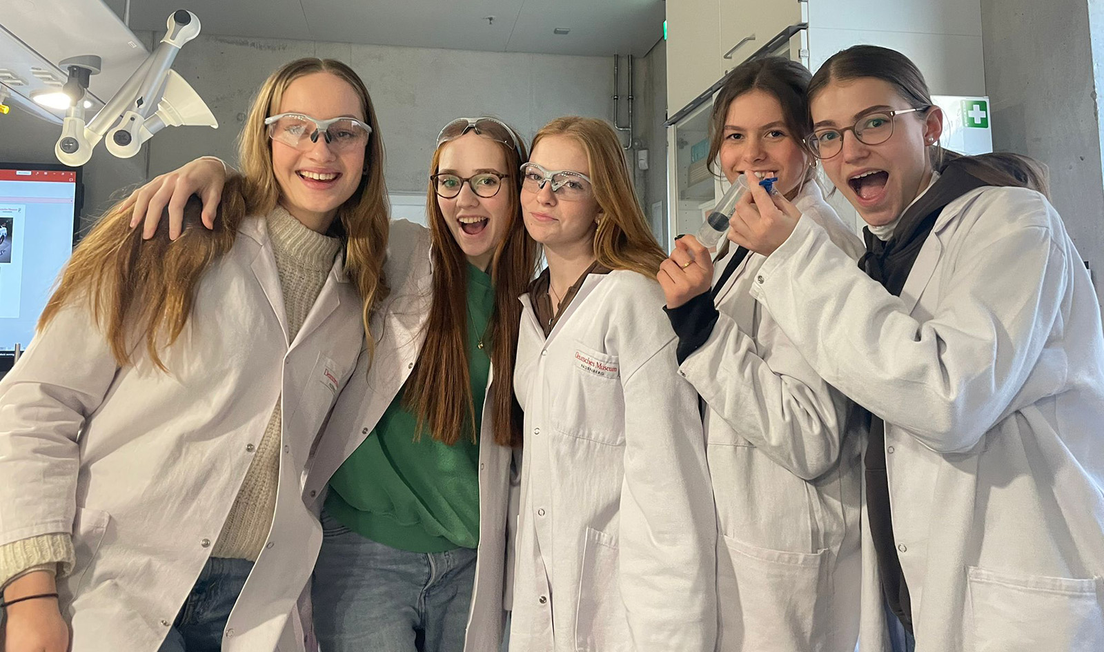 Neben der Beschäftigung mit der Universität sollte aber auch die Interaktion nicht zu kurz kommen, daher fand der andere Teil der Exkursion im Zukunftsmuseum statt, wo entweder im Labor mit dem Zukunftskraftstoff Wasserstoff experimentiert oder bei einer interaktiven Führung allerlei Technik der Zukunft erlebt werden konnte. Dass der Roboterhund und die Pflegerobbe dabei die Highlights waren, steht außer Frage. Die Stimmung im Labor scheint aber auch recht gut gewesen zu sein, wie das Bildmaterial zeigt.