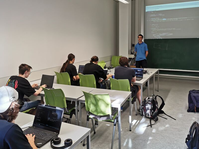 Einen spannenden Einblick, wie die beiden Fächer Informatik und Physik zusammenhängen können, durften interessierte Schüler der Klasse 10d bzw. der Q11 am 07.07.2023 erhalten. Der Lehrstuhl „Biofluid Simulation and Modeling – Theoretische Physik VI“ unter der Leitung von Prof. Stephan Gekle hat eine Plattform entwickelt, auf der virtuelle Fußballteams gegeneinander antreten. Die oben genannten Schüler haben das Projekt getestet und in einem Auftakttreffen eine Einführung in die Handhabung der Software erhalten.