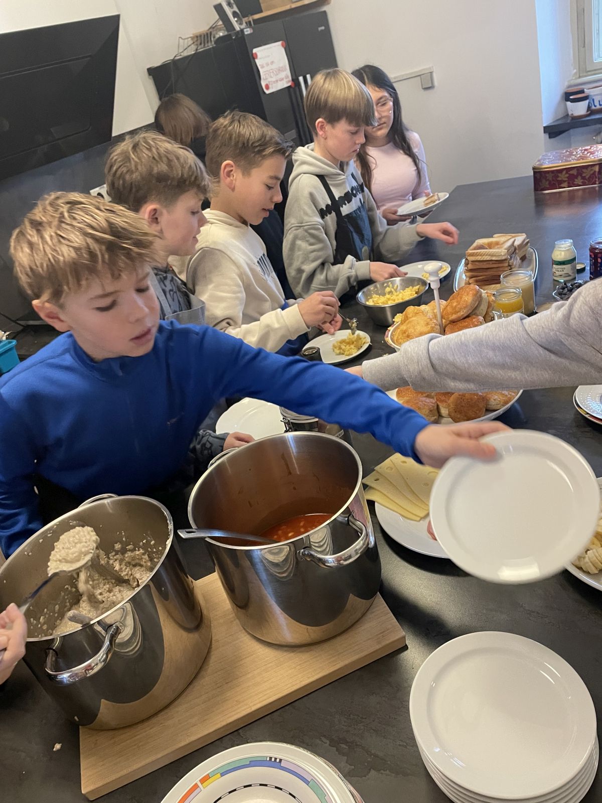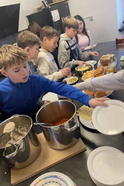 Warum so ein englisches Frühstück eigentlich für den ganzen Tag reicht, war schnell klar: Scrambled eggs, bacon, baked beans, porridge, sandwiches – bei so vielen guten Sachen, die die Schüler im Café Blu zubereiteten, waren die Bäuche schnell voll und alle pappsatt. Und es zeigte sich, dass an dem alten Vorurteil, die englische Küche sei nicht gut, aber mal gar nichts dran ist …